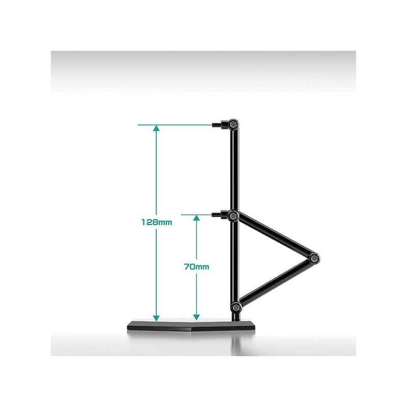 Simple, sleek and affordable! A set of three black display stands. These stands feature a plain design perfect for articulated figures, chibi figures, plastic models and more. The support arm is equipped with a 3mm pin for connecting to holes of corresponding size. Attachable clamp-style parts and extender parts for tights spaces are also included. The stands are made with transparent ABS resin. The base area is approximately 95mm x 95mm. Support arm can be adjusted from 70mm to 128mm in height.