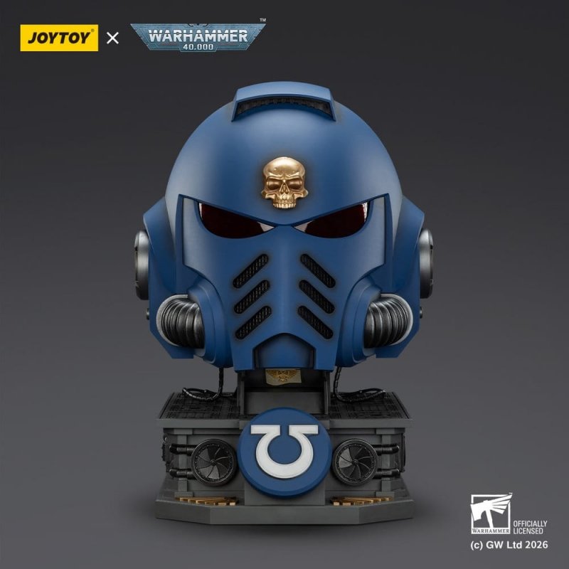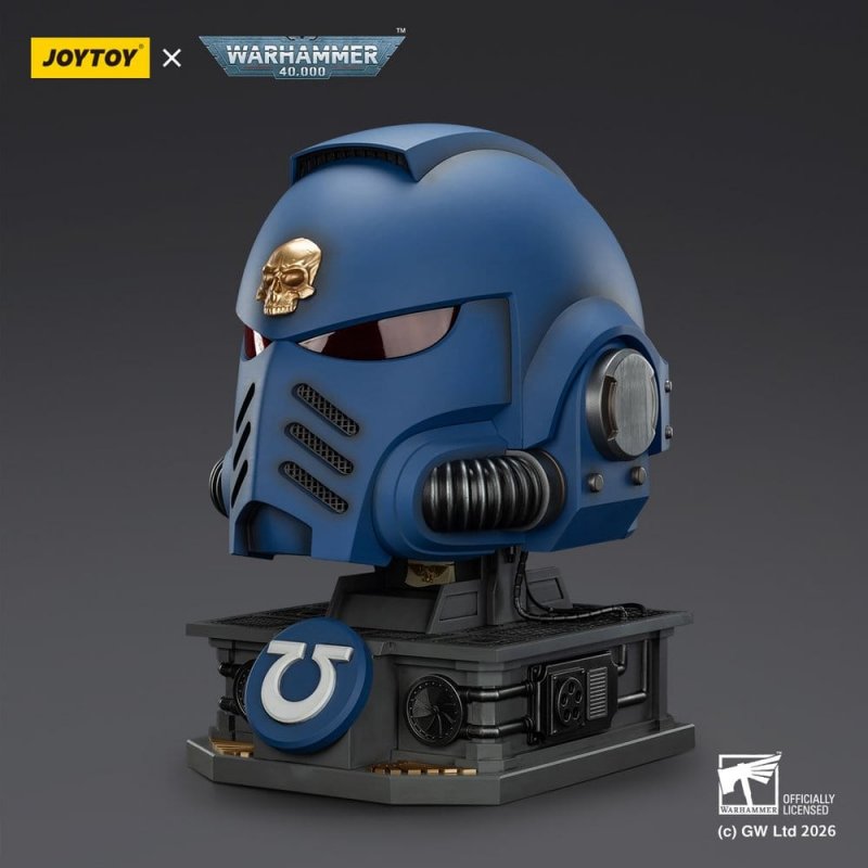 This action figure from the Warhammer 40,000 license is manufactured by Joy Toy (CN). It depicts the Captain MkX Helmet & Display Stand Ultramarines and has a height of 44 cm.