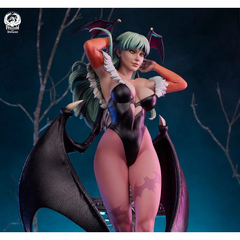 Sideshow and Premium Collectibles Studio presents the Morrigan 1:3 Scale Statue - Deluxe Edition.Prepare to be entranced by the devilish charm of this fully sculpted Morrigan 1:3 Scale Statue, portraying the alluring anti-angel Morrigan Aensland from Capcom's beloved fighting game series, Darkstalkers.Standing approximately 33" tall, Morrigan hovers above a detailed rooftop base, an ominous Bishamon lurking from within, complete with weathered shingles beneath a gothic cross.Morrigan's detailed portrait captures her beguiling gaze as she floats, enveloped in her textured wings, with arms raised and legs casually crossed. Her soft-hued hair flows around her fair complexion while she holds her effortlessly enticing expression, forever lurking in the mind's eye of all who dare to look upon her.The demon realm royal dons her iconic bodysuit and vibrant sleeves paired with her bat-themed tights.The PCS Deluxe edition of this alluring statue includes Morrigan's faithful nocturnal bat companions flying below her in a trail of smoke.Surrender to the darkness and add the Morrigan 1:3 Scale Statue - Deluxe Edition to your collection today!Product Size: 83 x 51 x 46 cmPlease note: Due to the size of this item, additional shipping costs may apply. Apart from your location, the actual package size and weight is needed to determine those costs. Both are unknown at this point and may not be available until the product arrives in our warehouse.
