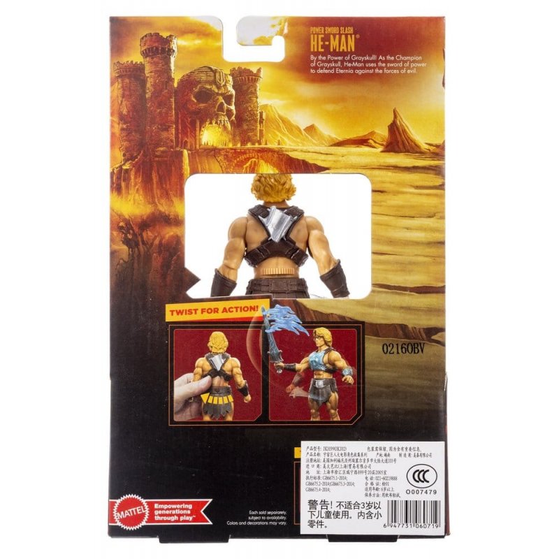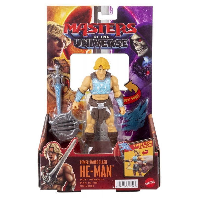 This He-Man figure with the striking power of the Sword of Power is inspired by the 2026 live-action film Masters of the Universe. Children can use it to bring the battle between good and evil in Eternia home. With this figure of the most powerful man in the universe, children can activate a twist-and-release function for combat action. This articulated He-Man feature figure is designed true to the film and resembles actor Nicholas Galitzine. The characteristic Sword of Power is included as an accessory, which further emphasizes the combat moves. Colors and designs may vary.