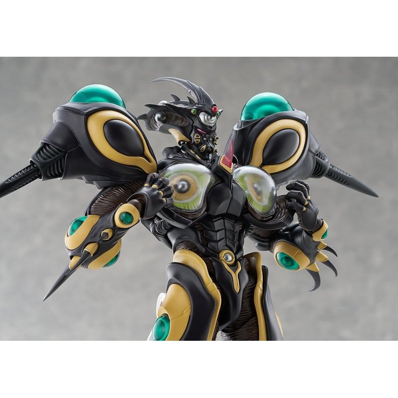 From the manga series "Bio Booster Armor Guyver" comes a figma of Gigantic Dark!Optional parts: - High-Frequency Swords - Parts for recreating the Giga-Smasher - Gravity Ram - Other optional parts for different poses.The articulated figure stands approx. 22 cm tall.