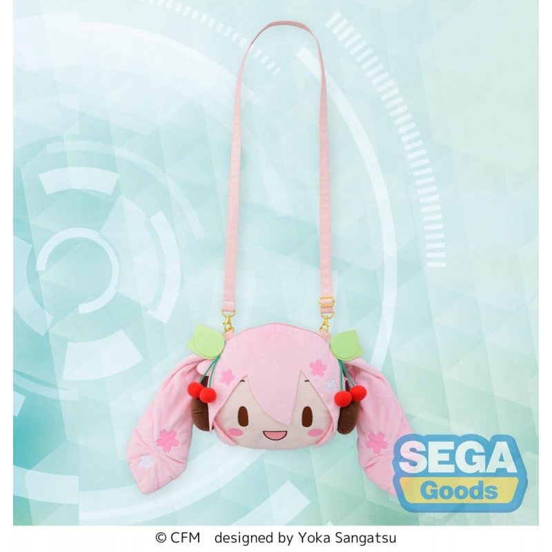 This is a shoulder bag from the 'Character Vocal Series 01: Hatsune Miku' license, manufactured by SEGA. It features the 'Sakura Miku' character face design.