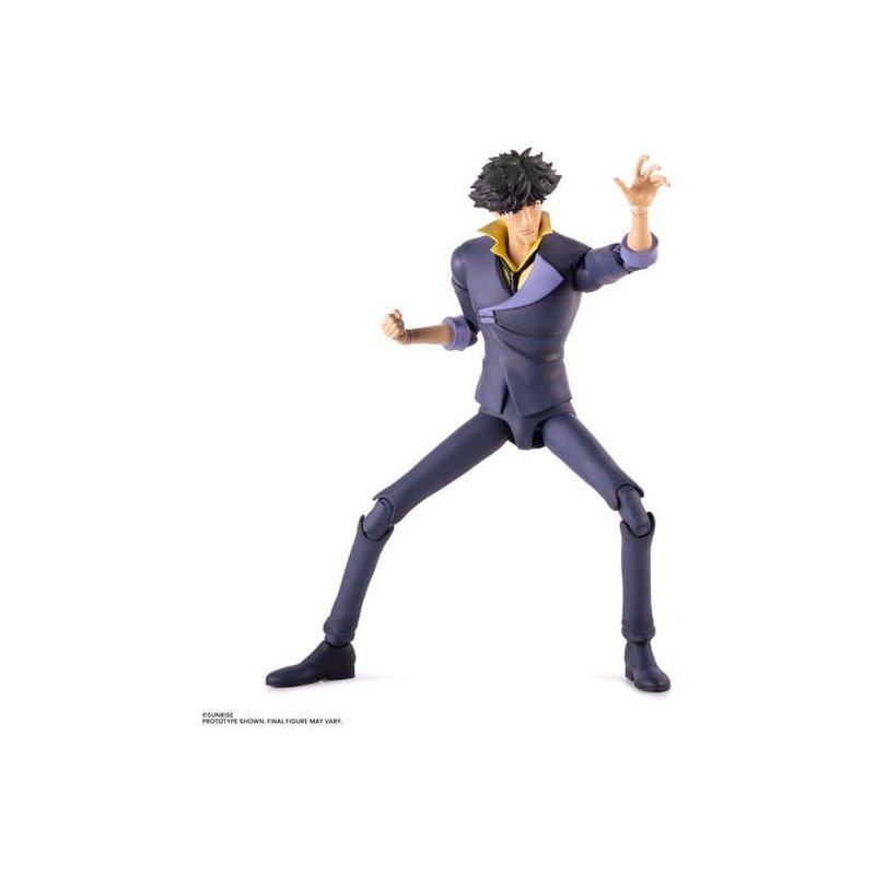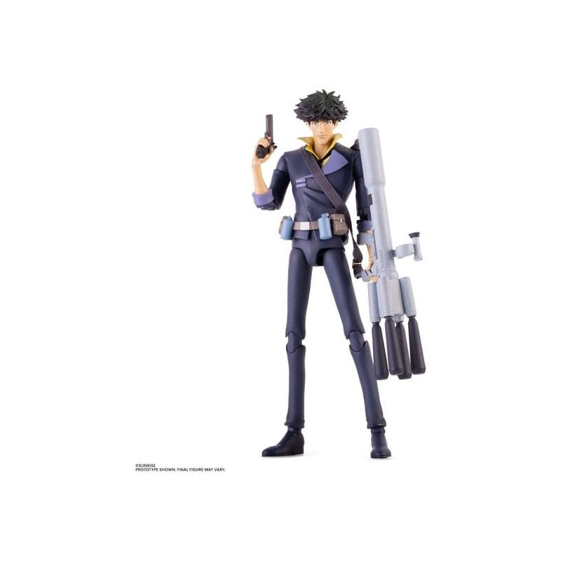 This detailed action figure is part of 'Cowboy Bebop'. It is approx. 30 cm tall and comes with additional accessories and interchangeable parts in a printed box.