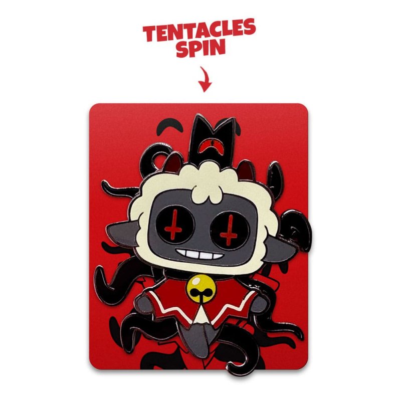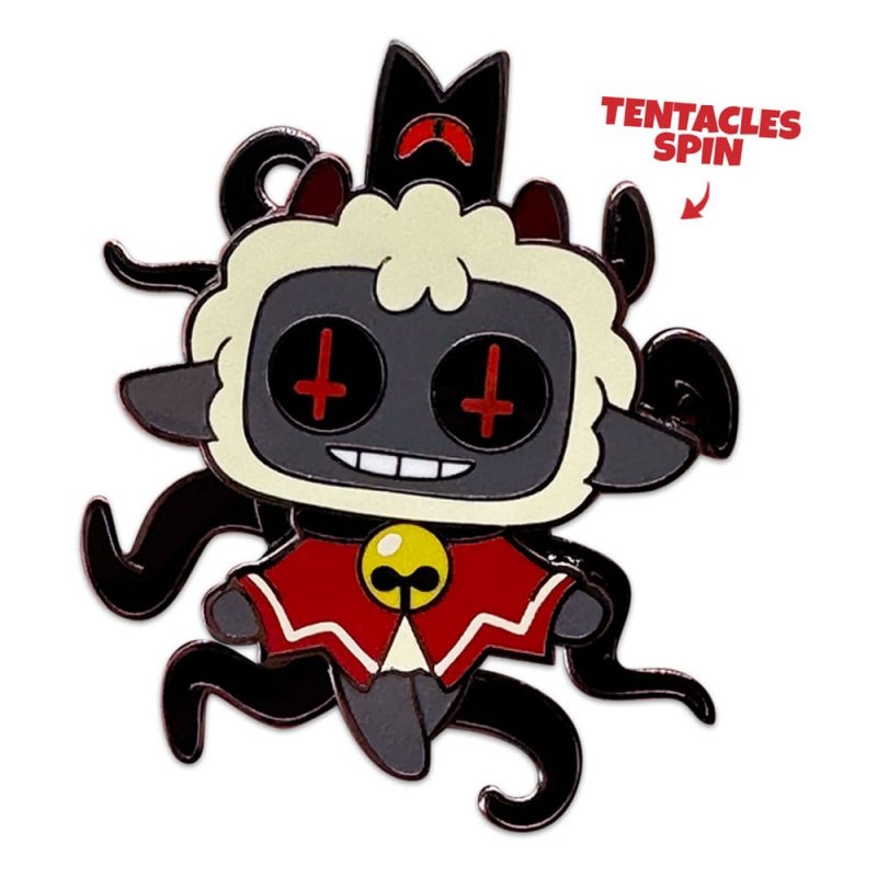 The Lamb is here to seduce you to a world of sin with their new pin! At 2 inches tall with a shiny, high-quality finish, this pin sees the Lamb levitating with their hands reaching out welcomingly, as a sinister grin stretches underneath black eyes that have inverted red crosses, while the black tendrils attached to their back spin around hypnotically. Perfect as decoration on a cork board or showing off on your tote bag, backpack, fanny pack, jacket or wherever your heart desires, this pin is sure to turn heads and catch the eyes of anyone you pass, letting them know who's ready to succumb!About Cult of the Lamb:Cult of the Lamb is an action roguelike game, developed by Massive Monster and published by Devolver Digital, putting you directly in the hoofs of a possessed lamb as you become a cult leader to your flock and ultimately decide whether you'll be a benevolent or malevolent master!
