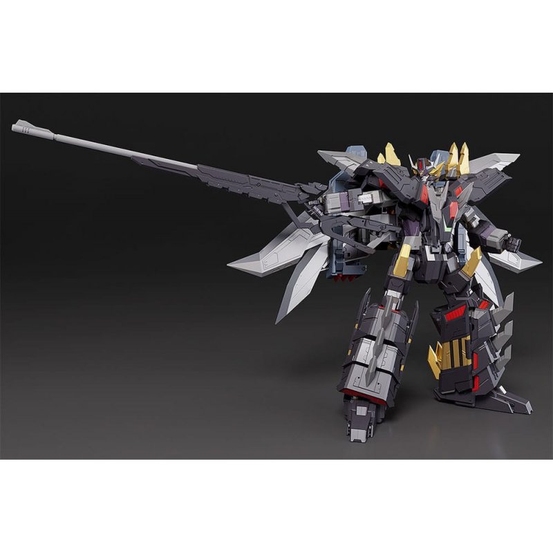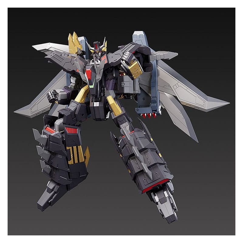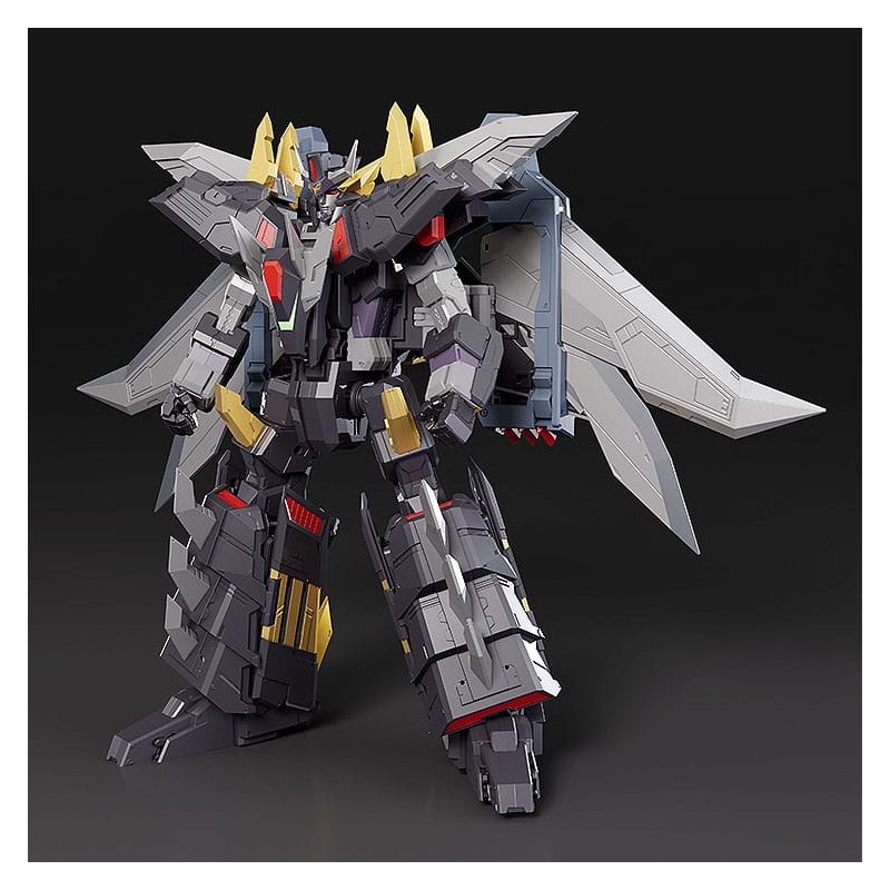 From "Dancouga - Super Beast Machine God" comes a THE GATTAI figure of the new Beast Machine designed by Masami Obari, Dairyuga!- Size in Humaroid Mode: approx. 260mm to top of head / Size in Aggressive Mode: approx 590mm in length. - Can be transformed into Normal Mode, Aggressive Mode and Humaroid Mode. - The model features several points of articulation, allowing for the recreation of various action poses and and ability to transform into various forms. - Thumbs and other fingers (*not independently articulated) allow for movement, making it possible to equip weapons with a closed fist. - Combine with THE GATTAI HAGANE WORKS Dancouga (sold separately)! This figure is designed to combine with Dancouga to form Ultimate Dancouga without the use of any additional parts. - Ultimate Dancouga stands at an impressive and overwhelming 330mm tall and 360mm wide. - Its dedicated weapon, Dancou Sword, is included. Mask parts for use with Dancou Sword are included as well, and can be attached to Ultimate Dancouga's face parts. - Set contents: Dairyuga, Blaster Rifle, Dancou Sword, mask parts for Ultimate Dancouga, attachment parts for use with the stand included with Dancouga. - The packaging features original illustrations by Masami Obari.