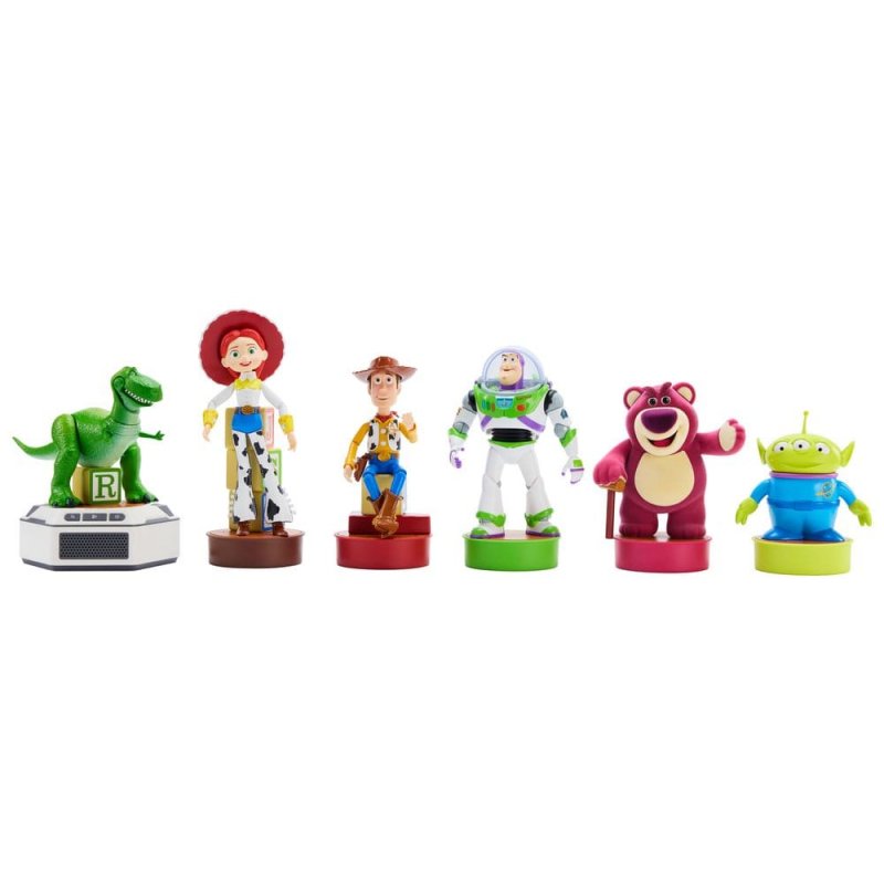 Bring the world of Disney Pixar's Toy Story to life with this incredible Interactive Robot Collector's Set! This French language version contains the following figures:- Buzz: 16.5 cm - Woody: 16.0 cm - Jessie: 18.9 cm - Lotso: 13.8 cm - Rex: 13.1 cm - Alien: 9.8 cmBase: 11.1 cmMaterials: ABS, PVC, POM, PC, POK Battery Type: Rechargeable Li-ion Battery
