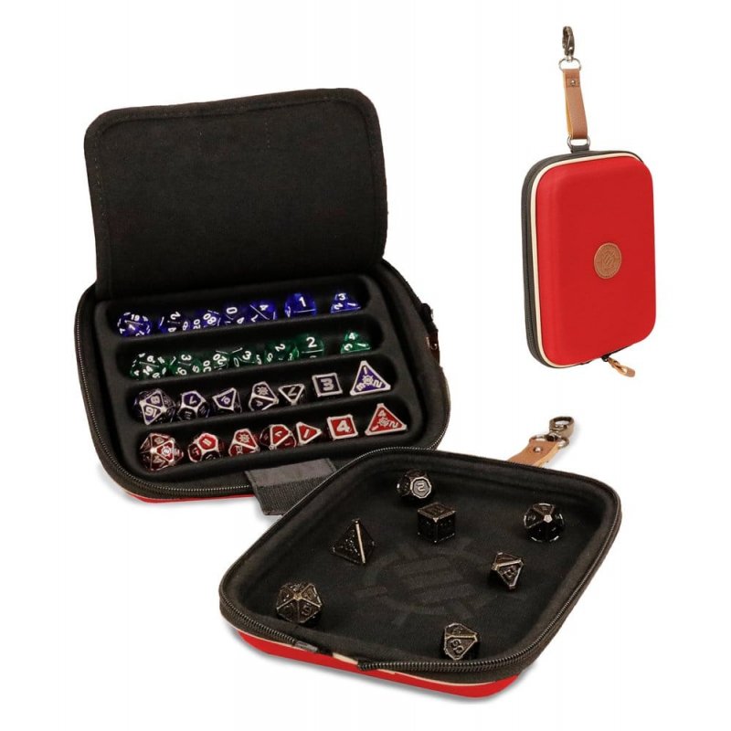 This Designer Edition dice case elevates your game night by providing a secure and organized way to transport and roll your dice.- Edition: Designer Edition - Function: Case converts to dice rolling tray - Organization: 4-slot dice holder (removable) - Capacity: 28+ dice (fits 7-piece RPG sets) - Security: Secure flap for transport