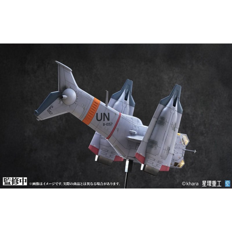 "PLANET-RING presents the YAGR-3B UNAF Close Air Support VTOL Aircraft, featured in EVANGELION:3.0+1.0 THRICE UPON A TIME, as a 1/72 scale plastic model kit.While referencing the various YAGR-3B designs that appeared throughout the film, the development team refined and expanded both its exterior and internal design to give the aircraft a more realistic look. The final model stays true to the spirit of the original design while creating a model with a sense of realism.Furthermore, both a plastic kit that requires no paint or glue, and a pre-assembled, pre-painted metal alloy version are being released simultaneously. The plastic version also includes stickers and waterslide decals, giving modelers the freedom to customize the look of the aircraft.Additionally, optional parts for advanced builders, such as metal etched fins and a high-precision UV-cured resin pilot, are included, greatly enhancing the model's level of detail."
