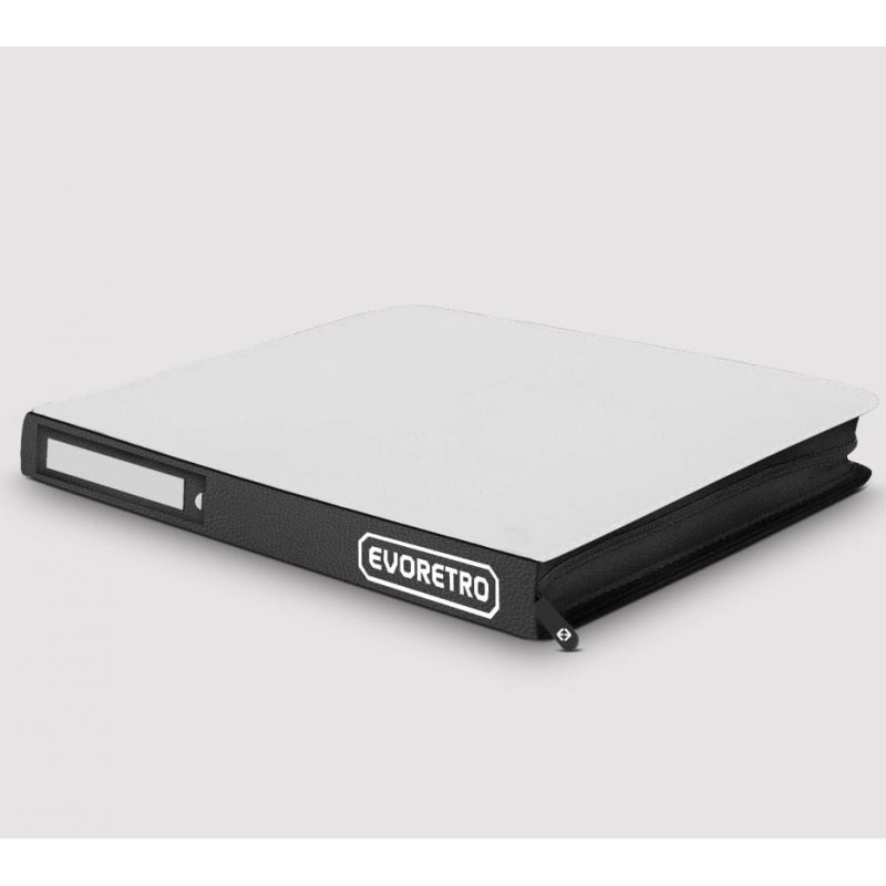 EVORETRO's Shield+ Binder safeguards your collection. Holds 216 cards, has 4 accessory pockets, tracker compartment, tailored for Toploader cards. Water-resistant with zipper, strap, and name tag for easy identification during travel or trade.