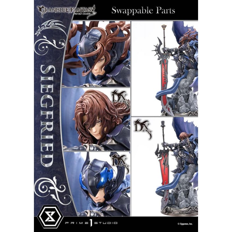 A cloak that billows skyward. A crimson blade that stands tall. Siegfried-his power and resolve, captured in 1/6 scale.From the classic smartphone RPG "Granblue Fantasy" comes Siegfried, now joining the Concept Masterline series!This 1/6 scale statue faithfully brings to life his fully uncapped illustration. From his relaxed pose with one leg raised, to the greatsword grounded beneath his hand, and the cloak spiraling skyward from his back-every element of this bold, anime-inspired composition has been translated into three dimensions with precise adjustments to account for anatomy and gravity.His windblown hair and piercing gaze are just the beginning. Every sculpted and painted detail is rendered with utmost precision. The armor is intricately built, even suggesting how it might be removed. The deep blues and purples of the cloak are shaded to reflect a dynamic light source, while the greatsword-likely the uncapped form of the Black Dragon's Maws-gleams with searing crimson and a sharp, lethal edge. Every decision honors the original artwork, capturing the pride of a noble and steadfast knight.Swappable parts enhance your display options: a calm expression beneath a robust helm, or a cool, subtly smiling unmasked face. You can also equip the pre-uncap version of the Black Dragon's Maws to recreate your ideal vision of Siegfried.Siegfried-his strength and conviction brought to life. A must-have for any party.Product Specifications:- 3 x Swappable Heads (Broken Helm, Helm, True Face) - 2 x Black Dragon's Maws (Before Uncap, After Uncap)