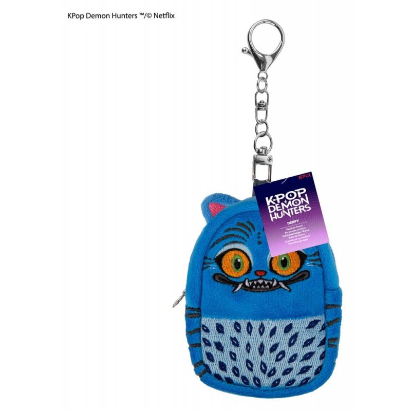 This KPop Demon Hunters Keychain Pouch Derpy is an officially licensed product from Cinereplicas. It is made of Polyester + Zinc Alloy.