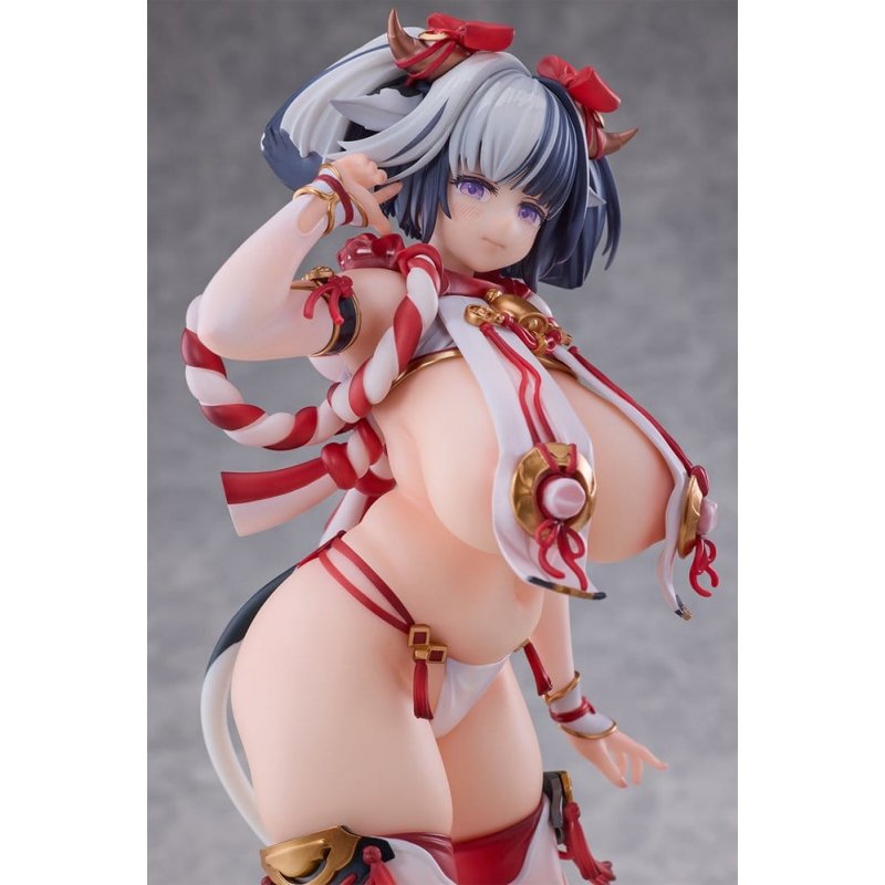 From popular illustrator u-suke comes this 1/6 scale figure of his original character, Ushi-chan Tokunou Shihori! This figure faithfully captures the adorable, chubby character illustrations by u-suke, recreating the soft curves and natural weight. The dazzling red and white contrast of the miko style has been boldly reimagined into a revealing design. The figure comes with interchangeable parts for different display options, including a panicked face part and a right hand holding a milk bottle.Product Specifications: - Scale: 1/6 - Height: approx. 27.6 cm - Material: PVC, ABS - Fully painted and assembledAccessories: - Base - Interchangeable Body Parts (Face, Right Hand, Breast and Lower body) - Milk bottle parts
