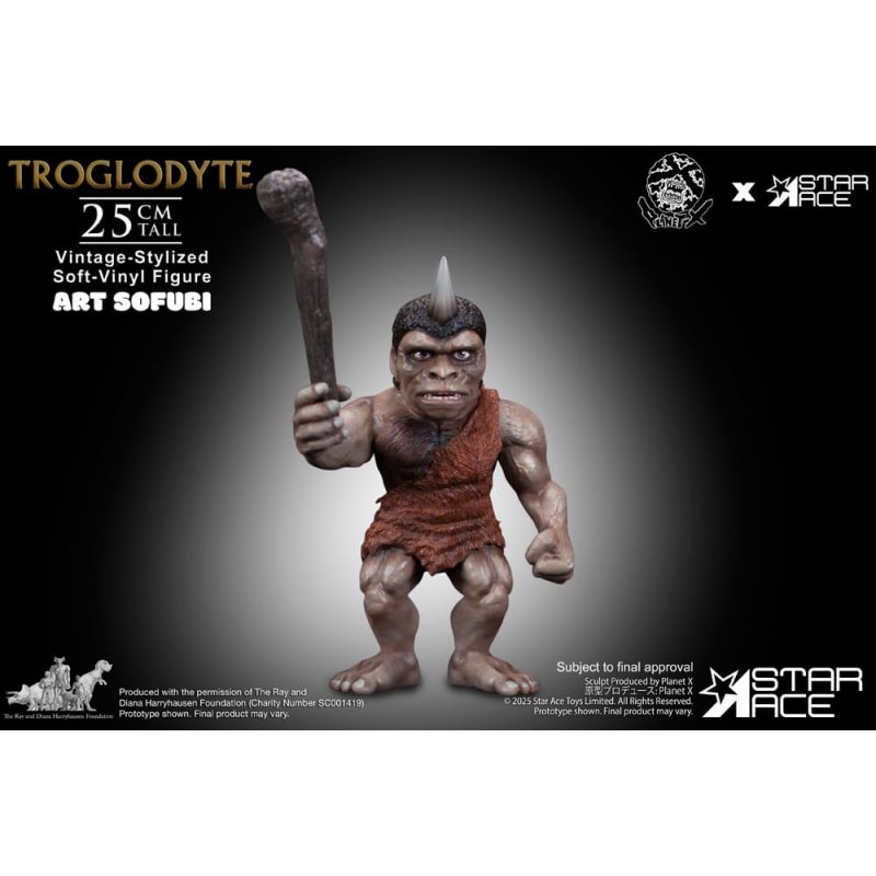 A Loyal Guardian from a World of WonderDiscovered in the ancient, mythical realm of Hyperborea in the classic fantasy adventure Sinbad and the Eye of the Tiger, the mighty Troglodyte joins Star Ace's acclaimed Ray Harryhausen collection. This noble humanoid creature became a crucial ally to Sinbad's party, and is now immortalized as a stunning SOFUBI stylized figure.Standing an imposing 25 cm (approx. 10 inches) tall, this collectible captures the unique design and powerful presence of the creature that aided our heroes on their perilous quest. Faithfully rendered in the premium soft vinyl style that defines this line, every detail-from its brutish physique and prehistoric features to its stoic expression-is a tribute to Harryhausen's legendary stop-motion artistry. The figure includes its a removable club and has some articulation at the shoulders, neck and ankles. With subtle design elements for enhanced display, this piece is crafted for collectors who appreciate the mythos behind the monster.More than just a brute, the Troglodyte was a heroic figure, and this collectible honors that legacy. It makes a powerful addition to any display, standing proudly alongside other creatures from the Harryhausen universe.Own a piece of cinematic magic and bring a true hero of the Seventh Voyage into your home.