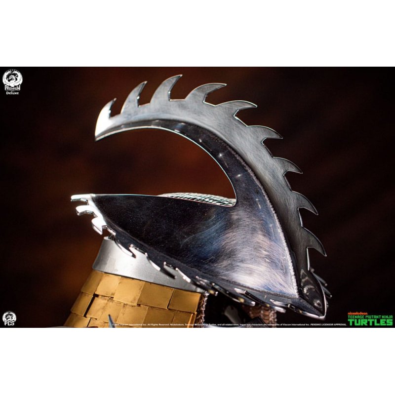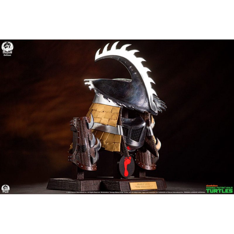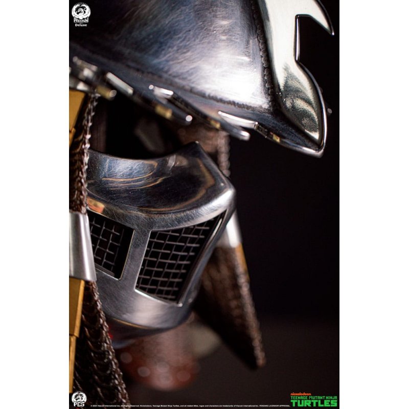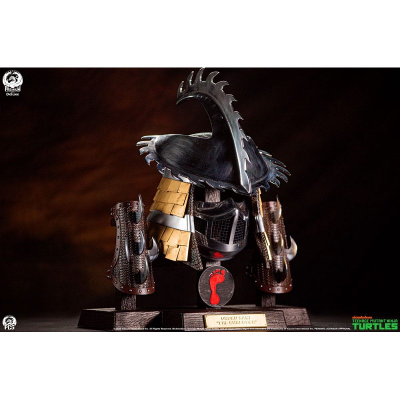Premium Collectibles Studio is proud to present the Shredder Life-Sized Electroplated Armor Set - Ooze Edition, an exciting new collectible that gives fans the opportunity to display this outrageous armor in their own secret lair.Standing 25" tall displayed on a 21.5" wide base the Ooze Edition showcases the leader of the Foot Clan's upgraded armaments including his helmet with additional serrated edges and gold embellishments as well as a pair of matching bracers. The set is arranged neatly on a faux-wooden base with a metallic name plate and crimson Foot Clan logo to elevate your TMNT display to museum status.Add some serious edge to your TMNT collection and pick up the Shredder Life-Sized Electroplated Armor Set - Ooze Edition by PCS today.Product Size: 63 x 55 x 50 cmPlease Note: Available as Electroplated and Stainless Steel editions. While the final production materials will be different, the appearance of both versions are the same.