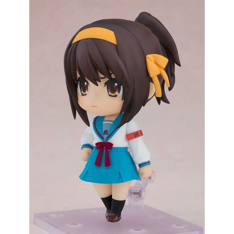 From "The Melancholy of Haruhi Suzumiya" comes a new Nendoroid of Haruhi Suzumiya!Face plates:- Determined face - Displeased face - Smiling faceOptional parts:- Ponytail head part - Megaphone - Armband (brigade chief/super director/super 3000) - Other optional parts for different poses.