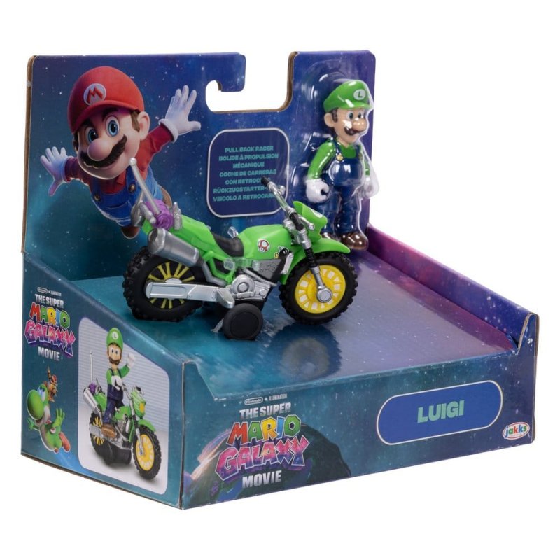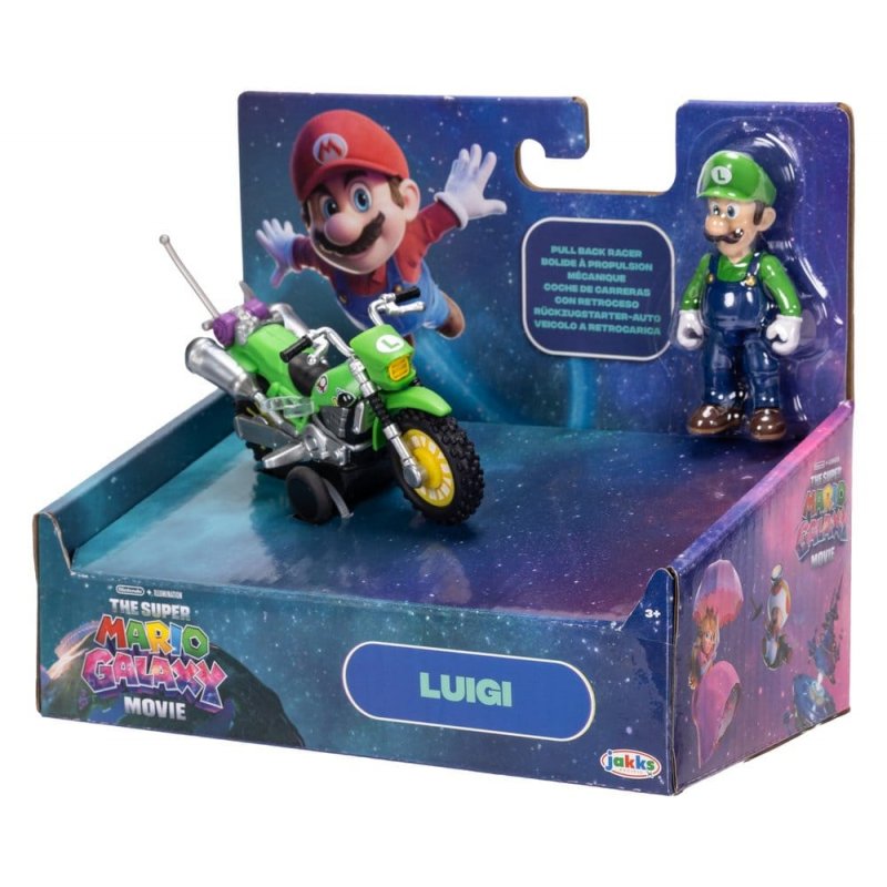 Collect your favorite characters with The Super Mario Galaxy Movie 2.5” figure with pull back vehicle. Inspired by the movie, the Luigi figure has unique articulation that allows him to sit on his motorcycle. Pull back and watch him go! Wave 1 features Mario and Luigi. You can collect them all! - 2.5” Luigi figure with 9 points of articulation - Pull back motorcycle - Ages 3+ - Each sold separately - Batteries not required