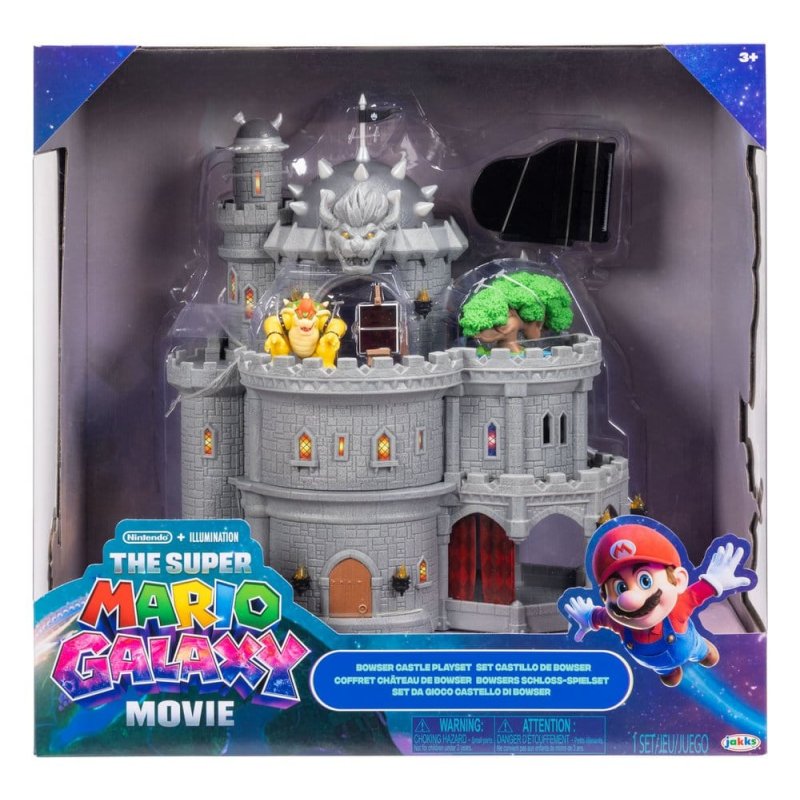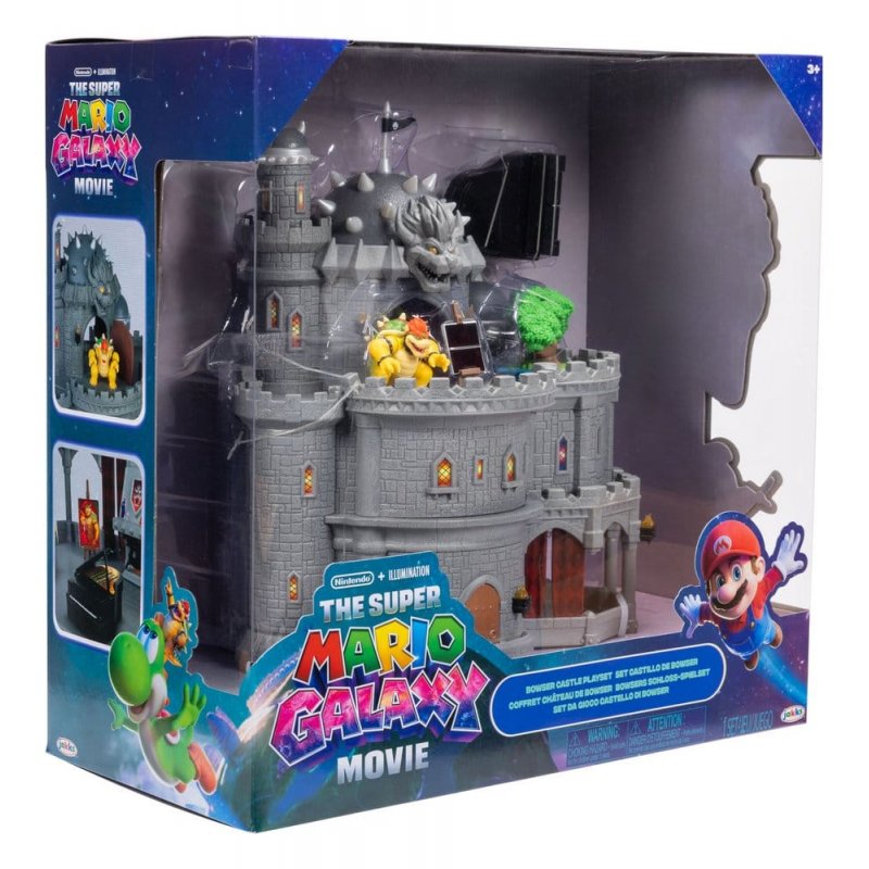 The Super Mario Galaxy Movie Deluxe Bowser Playset is fit for a mini-sized King! The castle is three-stories with exterior and interior and can be separated for lateral play. Castle features include spinning tower top, hinged door and fireplace. It's the perfect setting for Bowser to stay busy while playing the two-button chime-based piano, painting with the numerous heat-activated paintings and cauldron or garden with his bonsai tree. - 12" Deluxe Bowser Castle - Three-story playset can be separated for lateral play - Accessories include two-button chime-based piano and bonsai tree - Five heat-reveal paintings and cauldron - Includes 1.5” Bowser figure with 3 points of articulation - Ages 3+