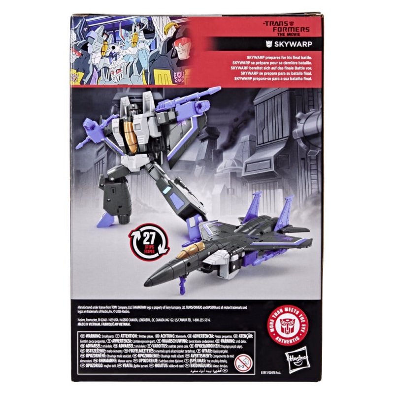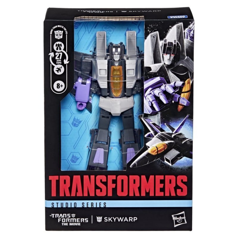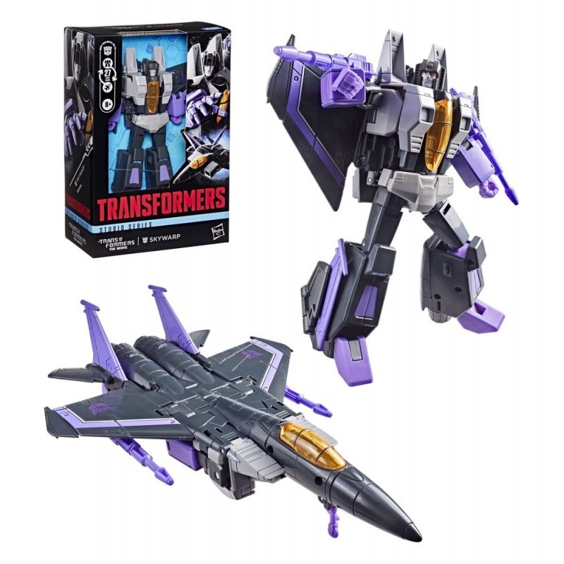 Experience the epic action of The Transformers: The Movie with the Studio Series Skywarp toy! The 16.5 cm (6.5 inch) figure converts from robot action figure to jet mode in 27 steps. With movie-inspired details, intricate poseability, and blaster accessories that attach in both modes, this Transformers Skywarp action figure makes an awesome addition to any collection. Look for more Transformers collectible toys (sold separately, subject to availability) featuring favorite characters like Optimus Prime, Bumblebee, Megatron, and more to create a lineup that is - More Than Meets the Eye.