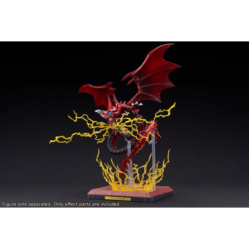 "Introducing an all-new expansion parts set for the Ju-Ko-Cho-Dai Series' Slifer the Sky Dragon Egyptian God Statue that recreates the fearsome dragon's iconic Thunderforce Attack!Packed with colossal effect parts brimming with the power of the gods, the set can be easily assembled just by swapping the head.The set also comes with a dedicated, light-up display base with additional effect parts that further enhance its dramatic look.The base's lighting can be controlled with the included Tablet of Lost Memories remote that allows the lights to be turned on/off even while inside a display case. Additionally, as the base is battery-powered, there are no unsightly cords, making for an amazing-looking display wherever it is placed.Included Items:- 1 x Thunderforce Attack Effect Head Part - 1 x Lightning Effect Part (For Display Base) - 1 x Dedicated LED Light-up Display Base (Uses USB Type-C or 4 AA Batteries, Sold Separately) - 1 x Aluminum Nameplates (Card Name, Japanese and English) Each - 1 x Light Remote Control (Designed After the Tablet of Lost Memories) (Uses CR2032 Coin Batteries, Sold Separately)About the Ju-Ko-Cho-Dai Series: Ju-Ko-Cho-Dai is a premium series that combines immense scale and overwhelming impact with masterfully detailed sculpting and paintwork, delivering figures of truly extraordinary quality."