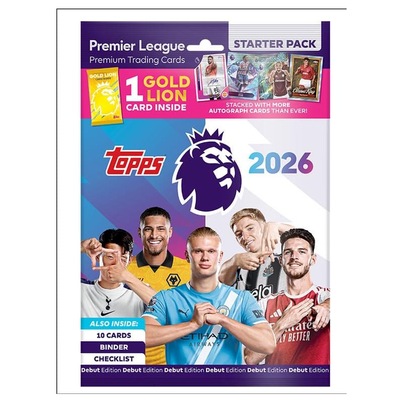 Starter set includes: - Folder with cover - Magazine & checklist - 1 pack of 10 cards - 1 exclusive high-tech Gold Lion card