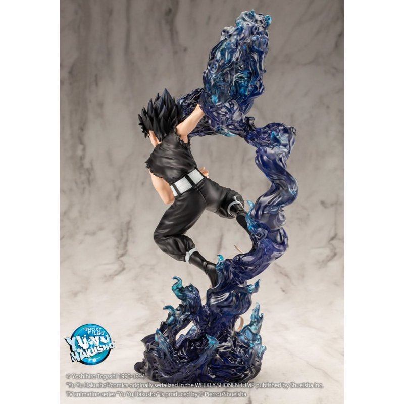 "Accompanied by his Black Dragon, Hiei has been updated!From the classic anime Yu?Yu?Hakusho comes a fully redone, new version of the Jagan eye user, Hiei!Modeled after his look in the popular Dark Tournament Saga, the posing and detailing on this figure have been greatly updated from the previous version. All four of the Team Urameshi members have also received a dynamic new effect base that reflects their respective fighting styles.His handsome looks, iconic hairstyle, and slender but muscular physique are all also on full display in this figure. To cap things off, rising from the base is Hiei's ultimate technique, Dragon of the Darkness Flame. The design creates a simultaneously beautiful and ominous look that changes with the angle and lighting.This new updated version can be enjoyed by both original fans and fans new to the series. Add him to your collection and display him alongside or back-to-back with his teammates! "