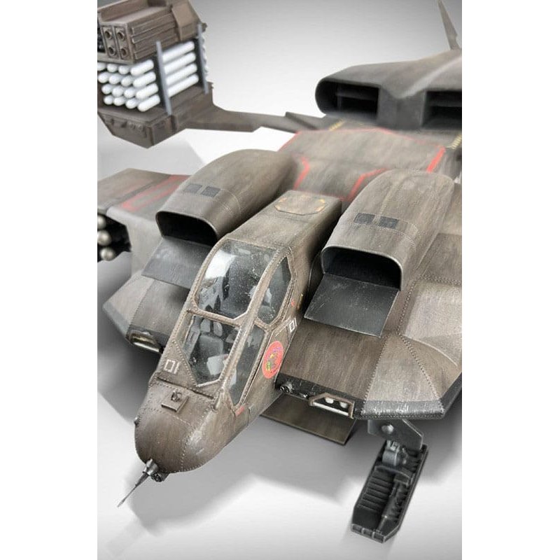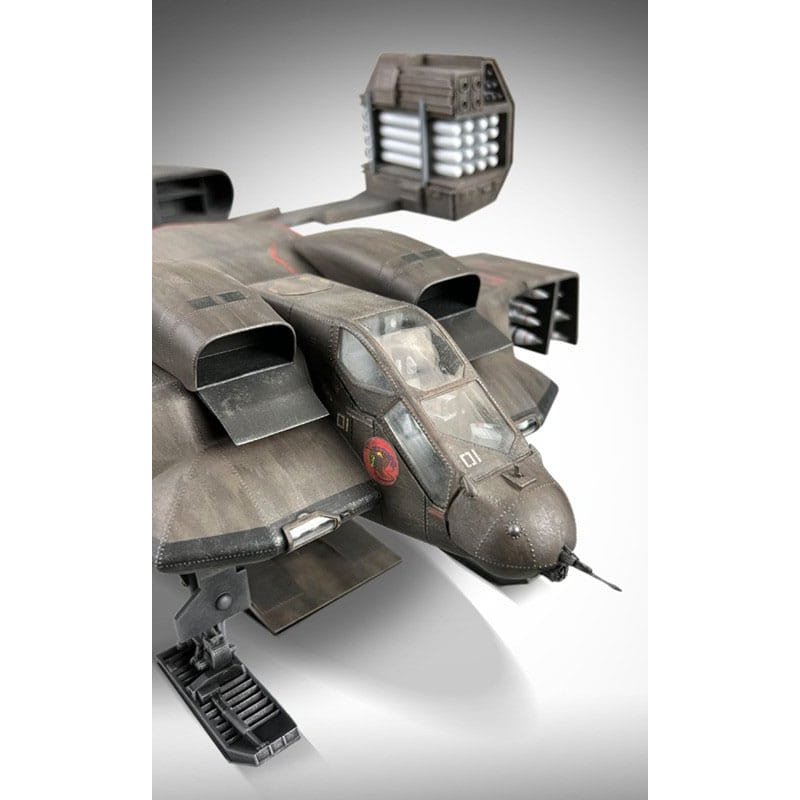 The UD-4 Utility Dropship, better known as the Cheyenne, is a type of combat spacecraft manufactured by UA Northridge. It is used by the United States Colonial Marines in a combat/transport role, and is often used to transport troops aboard an APC for rapid deployment upon landing.We are very proud to present our Officially Licensed, large-scale model of the UD-4 Cheyenne Dropship!Presented for the first time in such a large-scale format, this intricately detailed model is a very impressive 24" long, and is a companion piece to our popular USCSS Nostromo and USS Sulaco models!With the input of Aliens mythology experts and unpublished behind the scenes photographs, every inch of this incredible spaceship has been painstakingly recreated with meticulous attention to detail to make this the most accurate replica possible. From the detailed cockpit, to the complex landing gear, no detail has been overlooked!The model comes complete with two ramps, one for display in the "landed", ramp down position, and the other in the ramp up "in-flight" position, used in conjunction with the included display stand.This intricately detailed, Museum Quality piece is constructed from PU and mixed media and then hand painted to the finest detail with authentic weathering for added realism! It comes complete with a classic black stand display for "in-flight" display.A must have addition to any Aliens collection!Limited to 750 pieces.