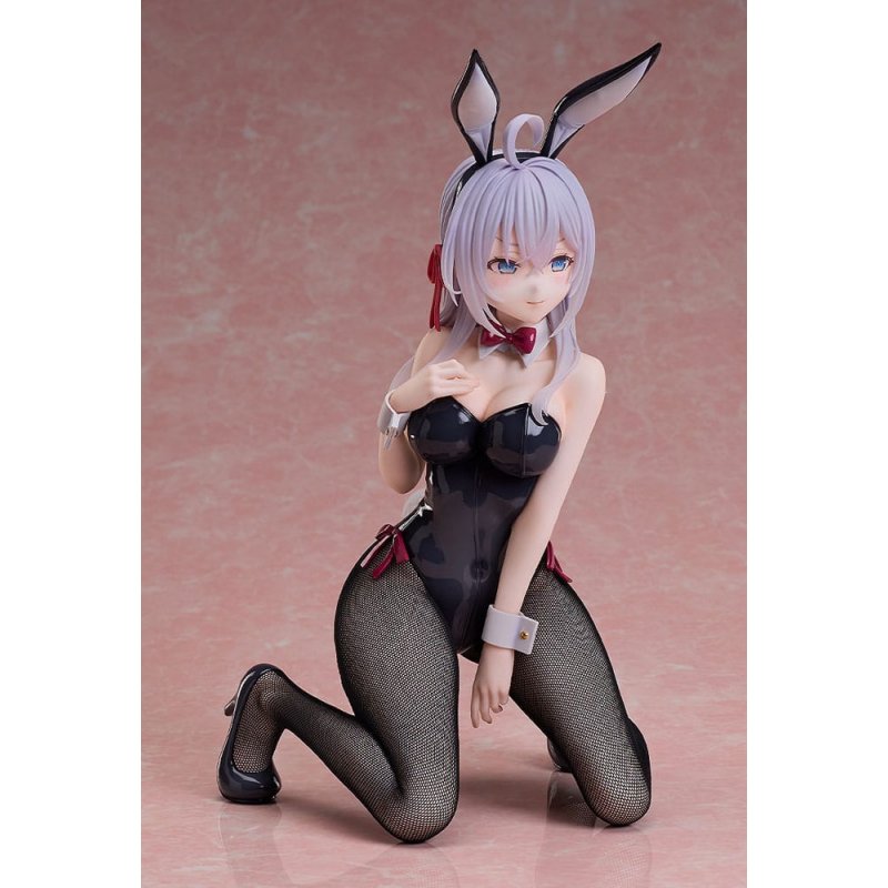 Presenting a 1/4 scale bunny figure of Alisa Mikhailovna Kujou (nicknamed Alya), the heroine of anime series "Alya Sometimes Hides Her Feelings in Russian". The figure is outfitted in a black bunny suit with realistic fishnets and a lustrous finish for a captivating look. The figure's kneeling pose exudes an elegant and bold charm. Standing at about 300 mm tall, this figure's detailed design is a must-see for fans of the series. Alya's new look radiates charm, making her a perfect addition to your collection.