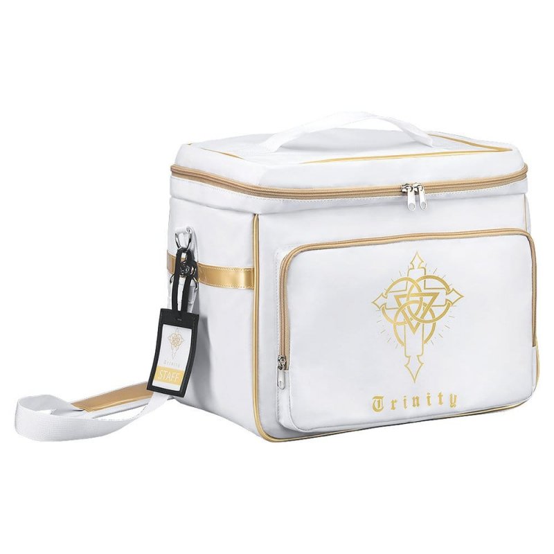 From "Blue Archive" comes Mari (Track)'s Trinity bag! The distinctive gold piping, gold Trinity logo and even the name plate have been faithfully brought to life! A removable internal cooler bag often used by sports clubs is also included for an even more realistic touch! The bag is the perfect size for overnight trips! - Material: Polyester - Size: 30 x 31 x 20 cm