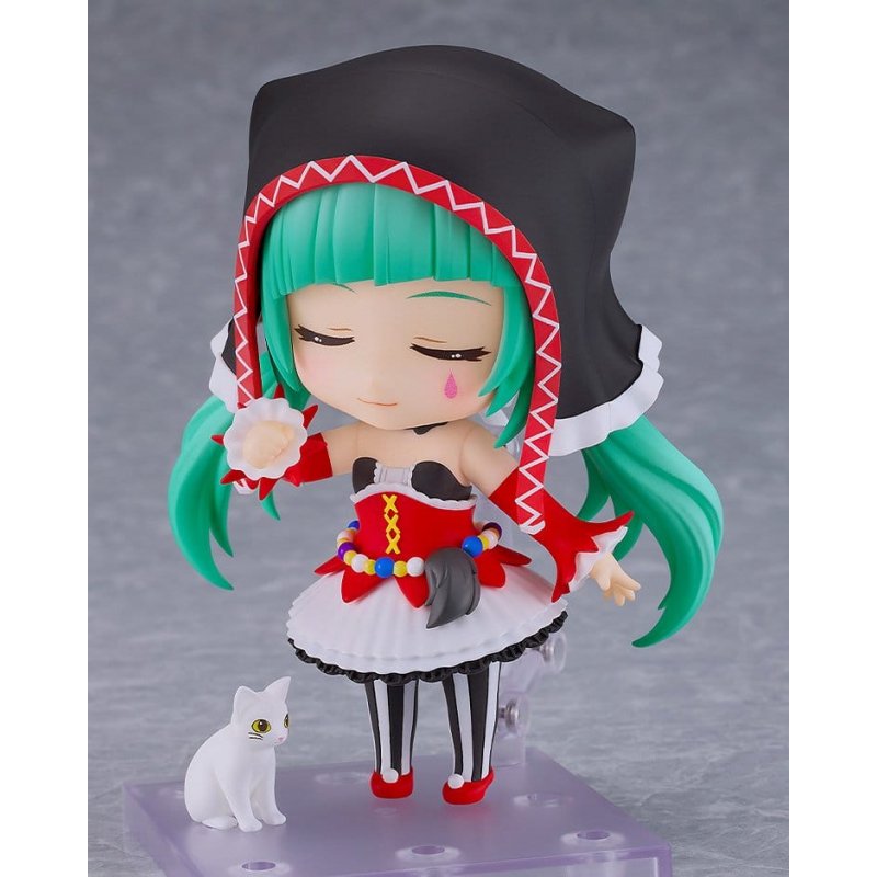 From the "SEGA feat. HATSUNE MIKU Project" comes a Nendoroid of Hatsune Miku in the "Pierretta" module costume designed by nezuki! Face plates: - Smiling face - Sidelong glancing face - Closed-eyes face Optional parts: - Standing microphone - Cat - Other optional parts for different poses.