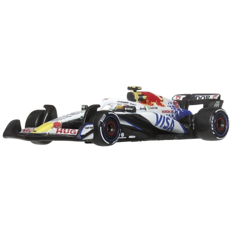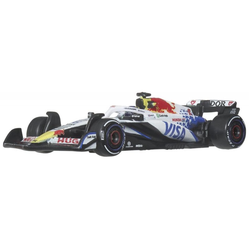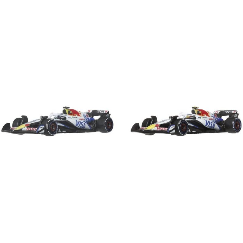 With this Hot Wheels Premium Visa Cash App Racing Bulls F1 Team 2-Pack, any Hot Wheels collection shifts into turbo gear. The set includes 1:64 scale die-cast race cars inspired by the models driven by Liam Lawson and Isack Hadjar. Each car features authentic liveries with realistic front wings and side pods, as well as detailed driver helmets. The metal body and chassis, along with Real-Riders tires, highlight the high-quality craftsmanship of the cars. With special packaging and an individual display base, both drivers score points. Color and design may vary.