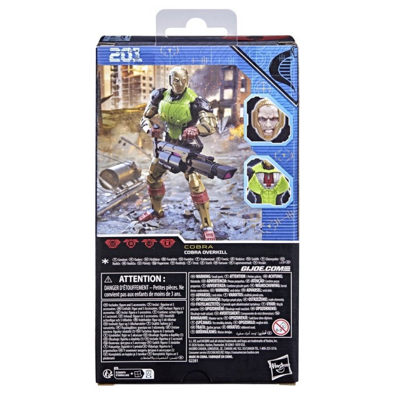 G.I. Joe is a highly skilled, on-demand, special operations force of men and women from around the globe tasked with defending the world from Cobra, a ruthless criminal organization bent on total domination. The brave members of G.I. Joe are prepared to seek out Cobra in any environment on the planet. Wherever there's trouble, G.I. Joe is there. New to the G.I. Joe Classified Series line, Cobra Overkill comes ready for adventure, with multiple points of articulation for high poseability. This Cobra Overkill figure contains 5 character-inspired accessory pieces including neural scrambler with wrist attachment, alternate claw hand, alternate plasma-blade hand, face plate, and a blaster; plus removable chest plate. Cobra Overkill began as an experimental prototype melding a Battle Android Trooper with a human host: a trooper who ran afoul of a Cobra war game training exercise. Now, with more than fifty percent of his body replaced by mechanical parts, he leads the B.A.T.s on the battlefield.