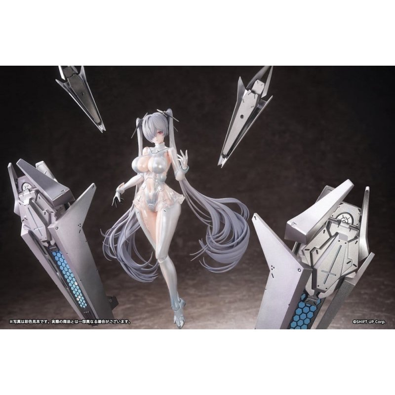 This action figure comes from Goddess of Victory: Nikke.She is approx. 16 cm tall and has various points of articulation and interchangeable parts. This means the figure can be presented in different poses.Contains:- Main figure - 3 x Alternative face part (Expressionless, angry, eyes closed, default included) - 1 x Mini tool NEO for changing eye direction x1 - 5 x Alternative hand part set (Default included) - 2 x Glass Slippers (Large) - 2 x Glass Slippers (Small) - 1 x Sniping pose body (Not posable) - 1 x Sniping pose twin-tail set - 5 x Snail Shell stand base set