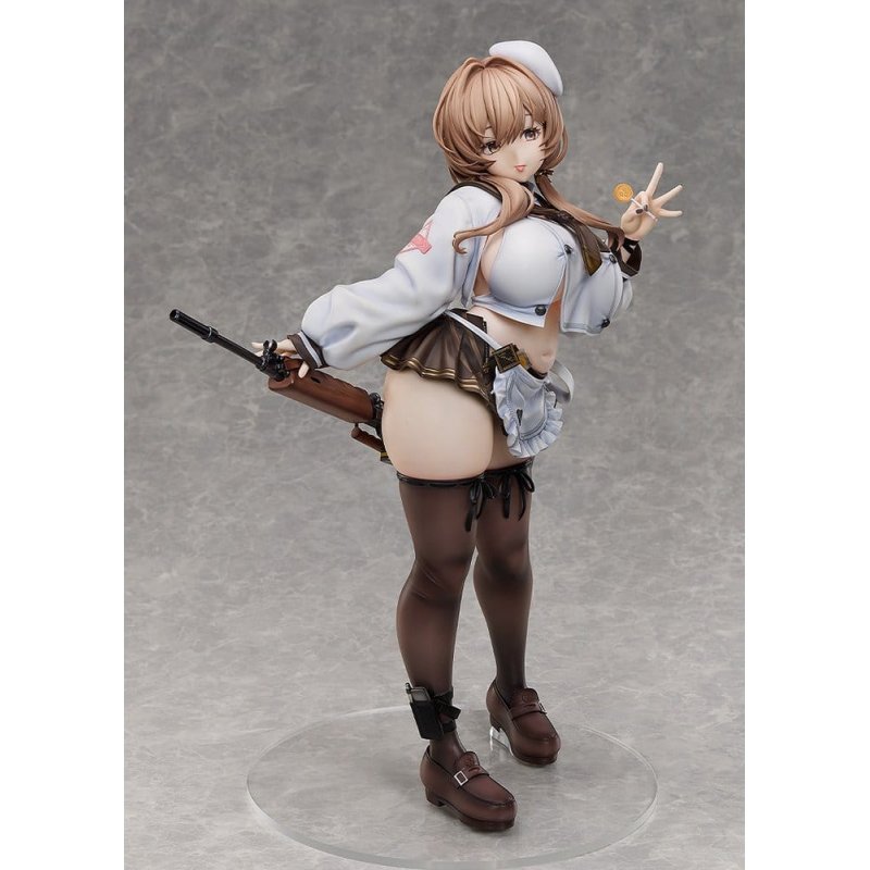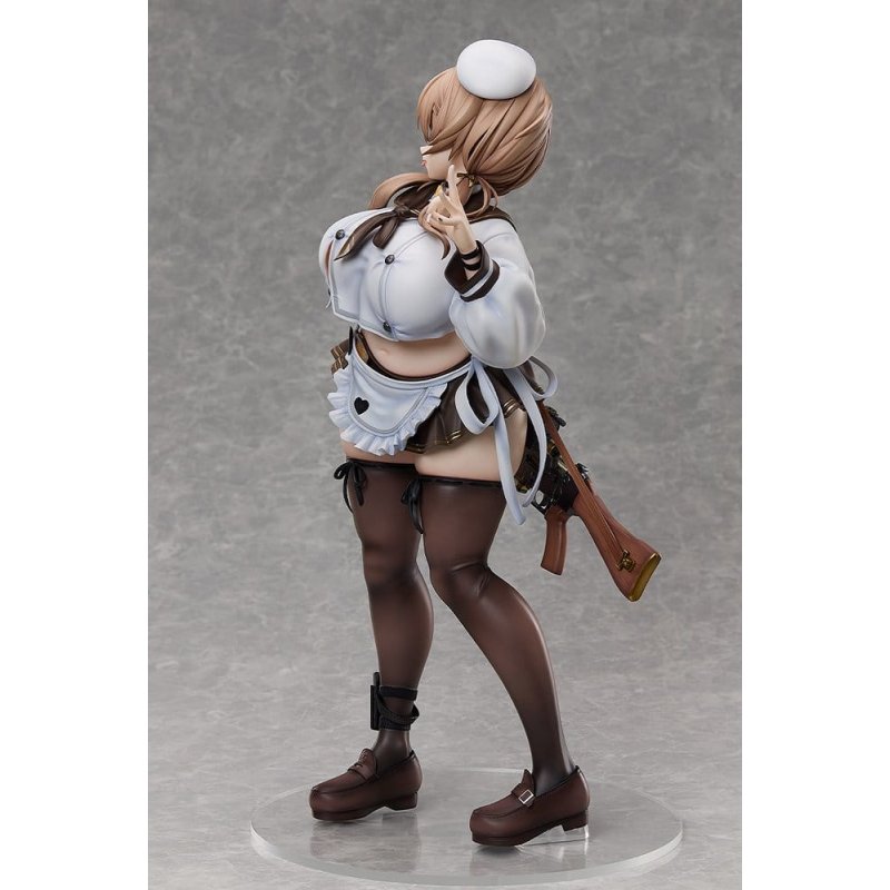 From "GODDESS OF VICTORY: NIKKE" comes a 1/4 scale figure of the Tetra Line Cooking Oil Unit member, Bready! Her eye-catching proportions have been carefully sculpted based on her character design and official illustration. Gently tilting at the waist while playfully holding a lollipop, her teasing pose faithfully captures her charm in figure form. Special attention has also been paid to the visual appearance of textures, including the clothing hugging her curvy physique and the transparency of her stockings. Her rifle, the Chewing Taste, has also been meticulously crafted, transporting you further into the world of "GODDESS OF VICTORY: NIKKE." Be sure to add this impressively large and detailed figure of the charming Bready to your collection!