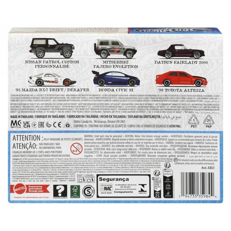 The Hot Wheels Streets of Japan Multipack shifts any car collection into high gear. The set of six 1:64 scale toy cars consists of modern and vintage Japanese vehicles. The high-quality crafted vehicles are housed in a thematically matching box. Fans should check out the additional themed multipacks featuring Zamac, HW Legends, and Euro Style to complete a full collection. All items sold separately. Some items are not distributed in all countries. Style, color, and design may vary.