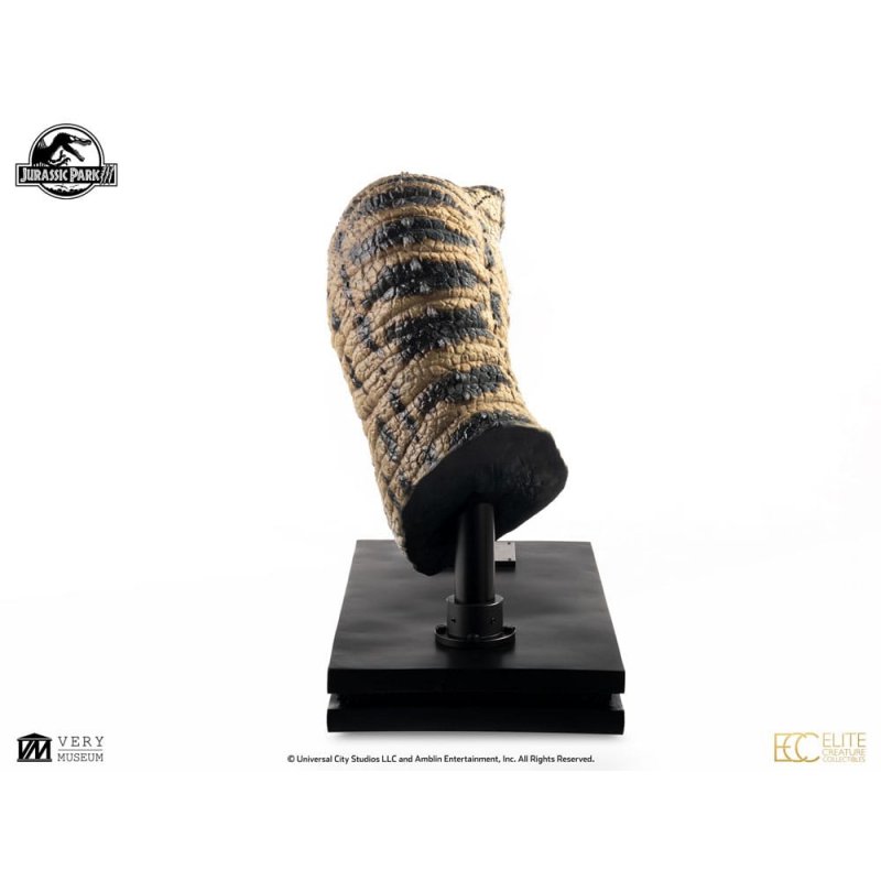 The highland Velociraptors from Isla Sorna appear quite different from those seen in the first two films. These raptors seem to have undergone further biological evolution in the lab-their skulls are longer and feature prominent crests on the nasal bones, traits absent in the earlier variants and fossil depictions shown in the series.As with the previous version, sexual dimorphism is present. The females are beige with black markings across their bodies and have yellow eyes. Unlike the males, their head crests are smaller and lack the red coloration. Both sexes display rounded pupils.Continuing to expand its collection for fans and collectors, Elite Creature Collectibles is proud to present the life-size Female Raptor "White Queen" bust from Jurassic Park III, in collaboration with ECC key artist Oskar Ankarudd, who faithfully recreated the model at full scale. The paint master was also hand-painted by Oskar Ankarudd himself.Specifications: - Height: approximately 29.6 inches (75 cm) - Width: approximately 30.7 inches (78 cm) - Depth: approximately 14.2 inches (36 cm) - Museum-style display base - Certificate of Authenticity signed by Oskar Ankarudd - Prop-reproduction-grade glass eyesLimited to 150 pieces Worldwide