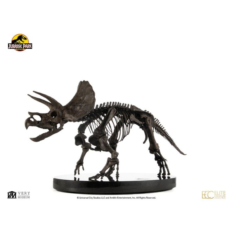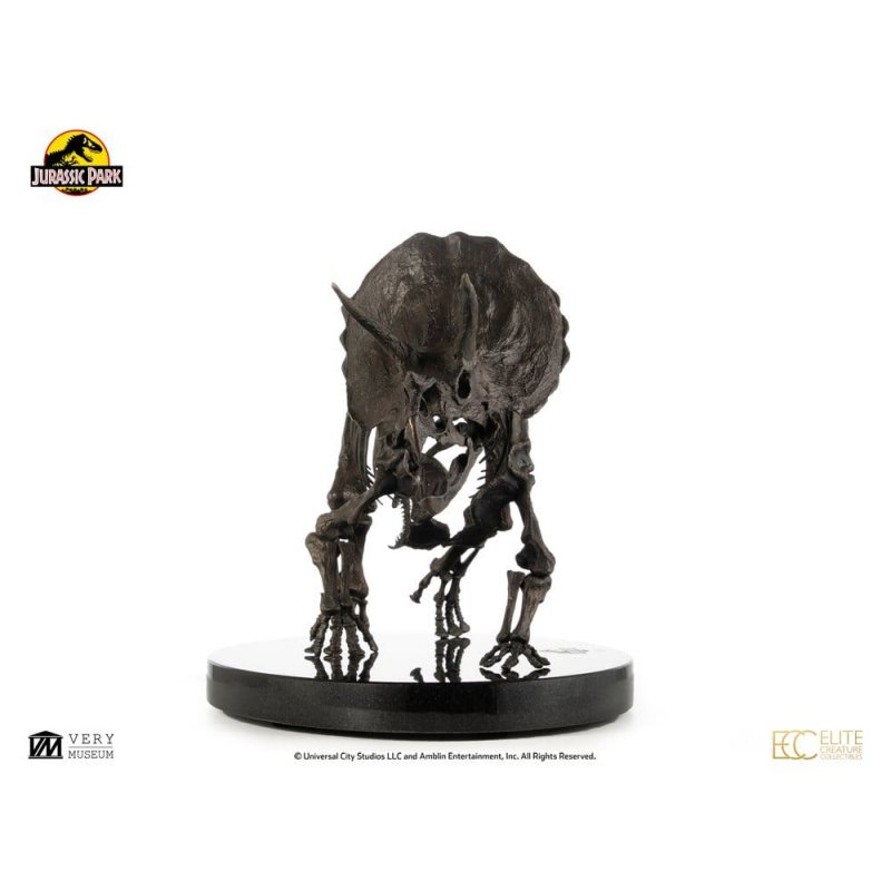 Triceratops is an extinct genus of herbivorous chasmosaurine ceratopsid dinosaur that lived in North America during the late Cretaceous period. It is also one of only four dinosaurs to appear in every Jurassic film. Among the most significant dinosaur fossils ever discovered, the Triceratops fossil makes a brief yet memorable appearance in the Jurassic World films.Elite Creature Collectibles is proud to introduce the Triceratops Fossil Skeleton - 1:12 Scale Bronze. With hands-on access to museum fossil collections, acclaimed ILM artist Bitan has faithfully recreated the Triceratops skeleton, drawing not only from real fossil references but also precisely matching the anatomical design seen on screen.This stunning piece is meticulously crafted from fine art bronze with a fossil-pattern patina and is mounted on an elegant marble display base.Specifications:- Approximately 12.9 inches (33 cm) in height - Approximately 23.6 inches (60 cm) in width - Approximately 7.5 inches (29 cm) in depth - Fine art bronze with marble base - Includes Certificate of Authenticity hand-signed by Bitan - Made to OrderLimited to 30 pieces worldwide.