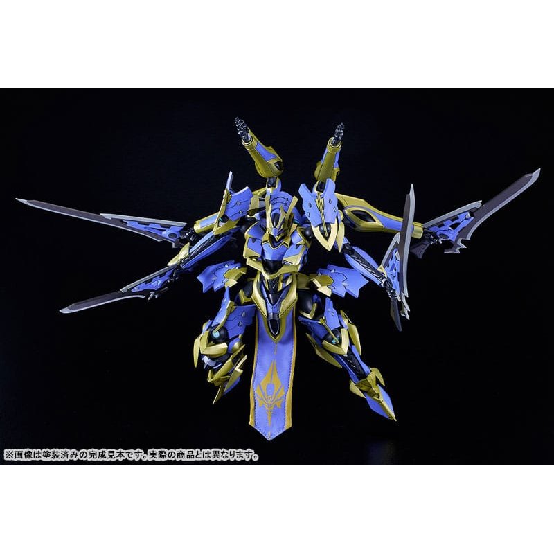 The "Knight's & Magic" light novel series rendition of the Silhouette Knight is finally here in plastic model form! Introducing a MODEROID DX-SCALE version of Ikaruga with its original design!- The DX-SCALE version of Ikaruga retains its high-quality sculpting while faithfully recreating the original design's color scheme through the various parts. - The newly molded horns on its head are inspired by the light novel design. - The apron over the waist area is made of cloth. The attachable parts of this model have also been newly designed and allow for two types of display options: cloth material and hard-plastic molding. - The transparent parts used throughout the model are made with two different molded colors. - The color scheme of the Sword Cannon has also been reproduced through part segmentation, as well as paintwork on certain parts. Comes with four cannons. Can transform into firing mode. - The four sub-arms are fully articulated. Additionally, the Rough Fist ejection can be recreated using dedicated attachment parts and cables. - The large-scale Behemoth's Heart reactor housed within the dorsal armor has been recreated. - The emblem of the hard-plastic waist part is included as a water-slide decal. - Can be combined with the DX-SCALE Kasasagi (sold separately) to create the Magatsu-Ikaruga!