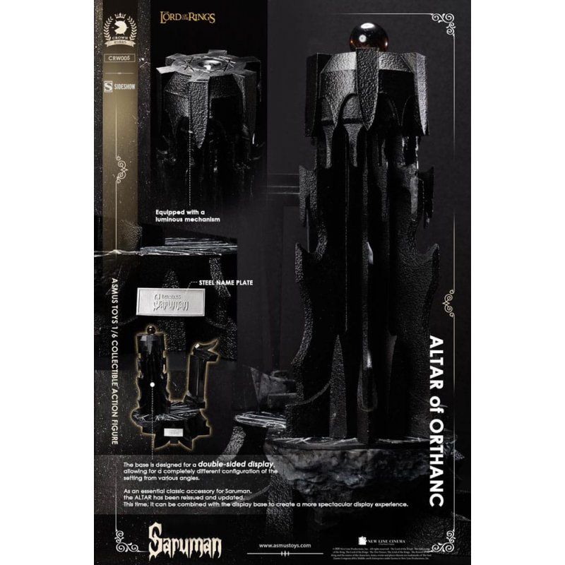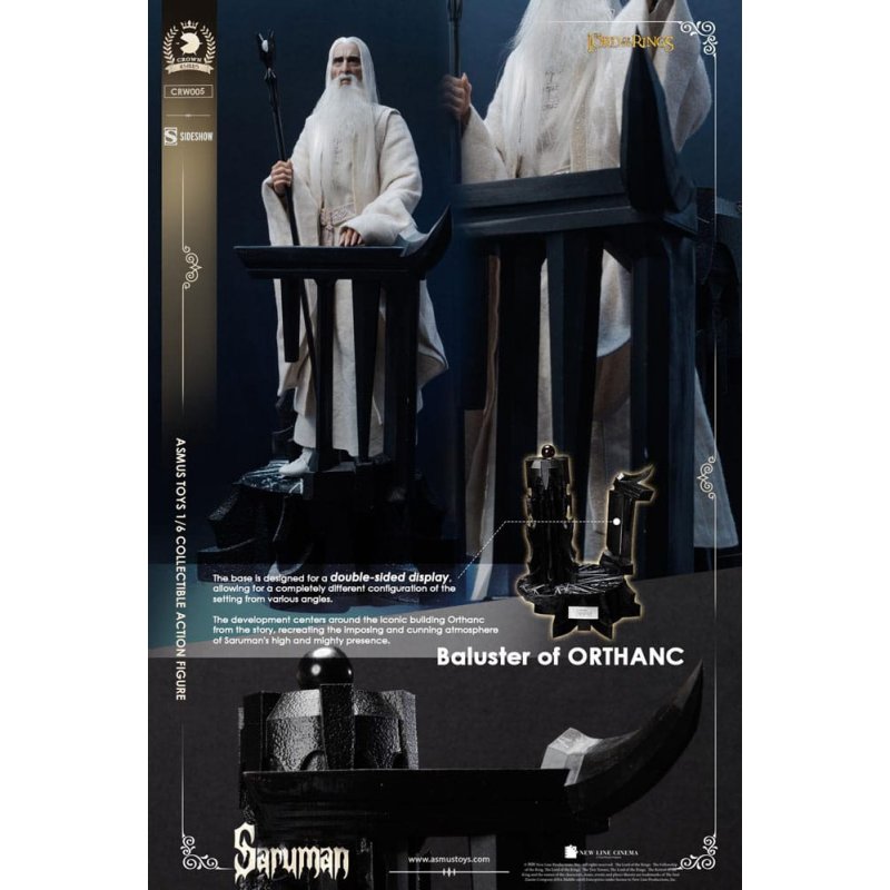 "Together, my Lord Sauron, we shall rule this Middle-earth."Sideshow and Asmus Collectible Toys present the Saruman Sixth Scale Figure, inspired by the character's appearance in The Lord of the Rings film trilogy.Saruman the White is a treacherous and powerful wizard who allies himself with Sauron in pursuit of the One Ring. From his chamber in the tower of Orthanc in Isengard, Saruman communes with the Dark Lord through a palantír, betraying old friends like Gandalf the Grey in his efforts to destroy the Fellowship of the Ring and enslave Middle-earth.The Saruman Sixth Scale Figure captures his iconic, regal appearance as portrayed in the films with numerous points of articulation, layered fabric costuming, and accessories for recreating his most notable scenes. Saruman's wizened portrait features moveable eyeballs and synthetic head and facial hair. The collectible action figure comes with four pairs of hands - grip hands, relaxed hands, open hands, and curved gesture hands - that can be interchanged to create dynamic poses and interact with his accessories, including his staff of power and his palantír orb. A double-sided environment display base inspired by Orthanc features an independently displayable altar with a luminous feature that pairs with the translucent orb for a sinister effect. Tolkien fans can pose their figure with a wide variety of display options for this powerful spellcaster and schemer.A new power is rising in your collection. Bring home the Saruman Sixth Scale Figure for your Lord of the Rings collection today.