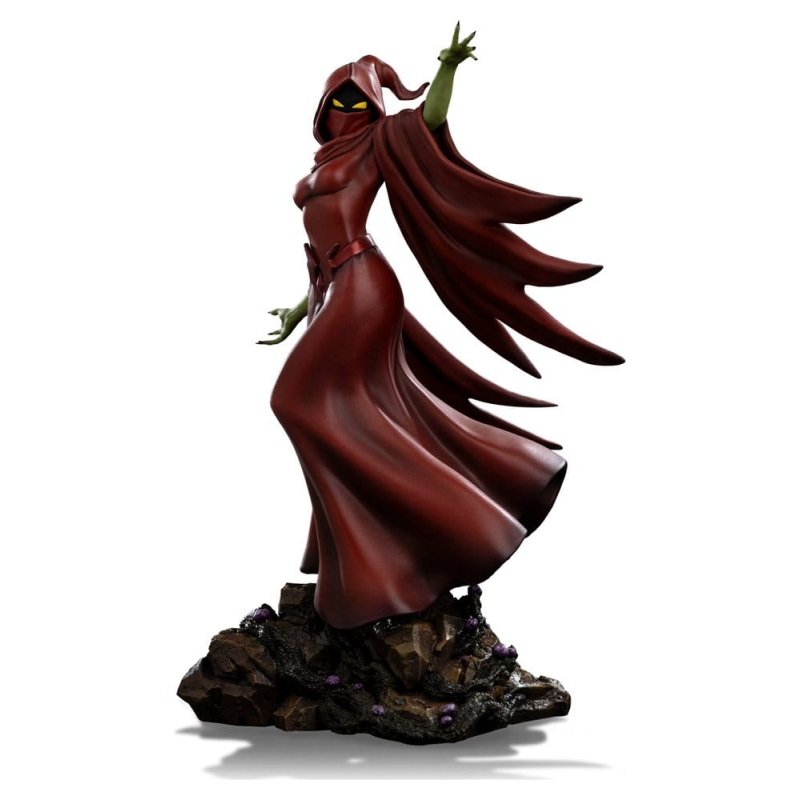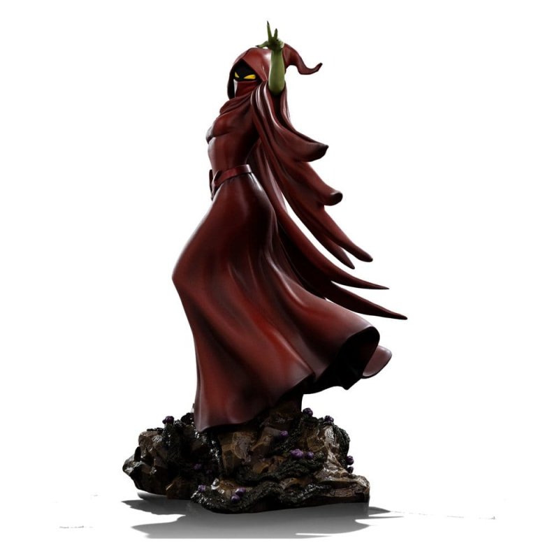 Dark, enigmatic, and shrouded in ancient magic, this statue brings Shadow Weaver to life in a haunting and commanding representation. Inspired by her role within the Masters of the Universe universe, this collectible captures the sorceress's sinister presence and manipulative power, embodying mystery, ambition, and arcane dominance.Produced by Iron Studios, this Art Scale 1/10 statue showcases refined sculpting and meticulously hand-painted finishes. From the flowing robes and concealed visage to the dramatic pose and themed base, every element is crafted to convey menace, intrigue, and the dark fantasy aesthetic that defines Eternia's most dangerous spellcasters.At 1/10 scale, this statue delivers a striking and atmospheric display presence, perfectly complementing heroes and villains from the Masters of the Universe collection. Designed to embody sorcery, deception, and power, it stands as an essential addition for fans and collectors who appreciate the darker side of Eternia's mythology.Resin statue, 1/10 scale, approx. 23 x 15,6 13,3 cm on base, officially licensed.