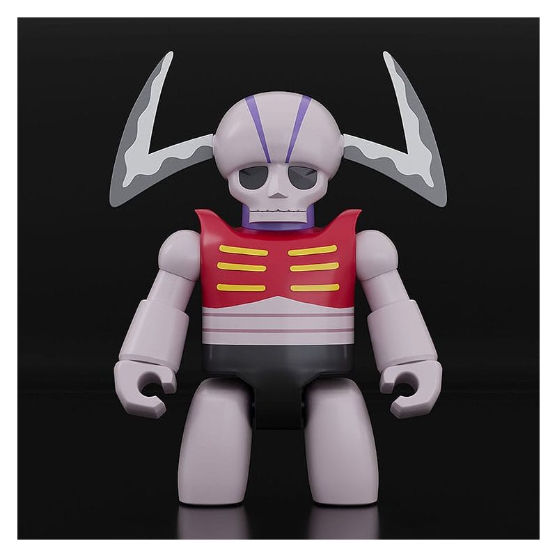 BRICKROID is a series of collectible robots. Standing at around 5cm tall, these robot toys are made with the concept of "cool and fun"! The series uses a uniform design format to bring together robots from a plethora of media. The small bodies are loaded with all the fun of posing and displaying them.From "Mazinger Z" comes a set of three mechanical beasts: Garada K7, Abdullah U6 and KingDan X10.- Each mecha stands at approximately 5cm in height and is and made of ABS. - Convex block bases are included. - Garada K7: Head, arms and legs are articulated. scythes on head can be equipped to hand parts. - Abdullah U6: Head, arms and legs are articulated. - KingDan X10: Arms and legs are articulated. · Included sword can be equipped to hand parts. The holes on the bottoms of their feet can be attached to 5mm diameter studs, allowing them to be displayed on dedicated stands. They can also be attached to generic brick toys with the same measurements.
