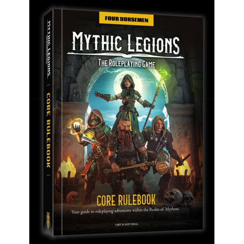300-page hardcover book contains all the information needed to start playing Mythic Legions: The Roleplaying Game. This book also contains a large foldable map of the Realm of Mythoss inside a flap in the book.