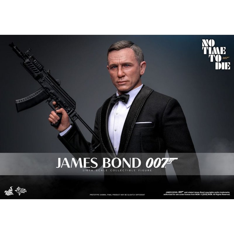 "Bond, James Bond."The extraordinary No Time To Die is Daniel Craig's final portrayal of James Bond story arc. This time, Bond returns from retirement to rescue a kidnapped scientist and to uncover a conspiracy involving nanobot technology when his family are in significant danger.There is no better time than now. Sideshow and Hot Toys are excited to introduce its first James Bond Sixth Scale Figure with 007 himself, as portrayed by Daniel Craig in No Time To Die. From the realistic head sculpt to costume with intricate details, no aspect of the figure has been overlooked, ensuring it to be in top-notch quality.Exquisitely crafted based on Daniel Craig's role as James Bond, the figure features a newly developed head sculpt with distinguished likeness and separate rolling eyeballs to enhance figure's realism. The fabric costume is finely tailored to showcase James Bond's classic gentleman appearance. Layering a black tux jacket with pocket square detail over a white dress shirt, the tux look is finished with a black bow tie and a watch. Additionally, two types of pistol and a machine gun are included to enhance the display on top of the gun barrel-themed backdrop and figure stand.While any James Bond collectible is already a statement-maker, the Hot Toys James Bond Sixth Scale Figure inspired by No Time To Die is a classic that will only make your collection look better than ever.