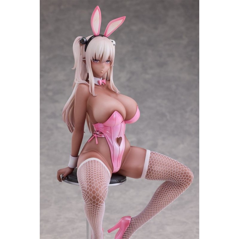 Illustrator Miyamoto Issa's original character, "Downer Bunny Anna" is brought to life in an impressive 1/6 scale figure.Her firm yet supple physique and enigmatic expression faithfully capture the allure of the original illustration. The bodysuit accentuates her curves, with a bold bust line and thighs pressing into finely detailed mesh tights. The glossy pink bunny outfit paired with her brown skin tone enhances her striking sensual appeal, while the heart-shaped window at the navel stands out as an especially eye-catching detail.Real fabric mesh tights are used up to the thighs, allowing for a realistic contrast against her smooth skin and a heightened sense of texture. Included Interchangeable R18 Ver. body parts further emphasize her appeal, as glimpses of bare skin beneath the delicately translucent bunny costume amplify the figure's seductive charm.Please welcome Anna, a captivating character whose laid-back, downer mood is matched only by her irresistible presence.