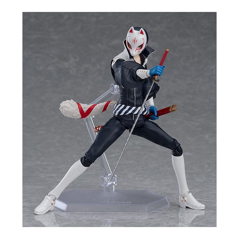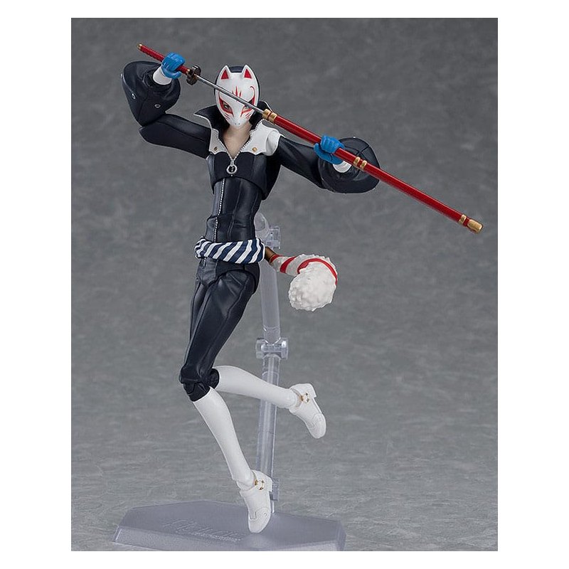 From the popular RPG game "Persona 5" comes a figma of one of the members of the Phantom Thieves - Fox!- The smooth yet posable figma joints allow you to act out a variety of different scenes. - A flexible plastic is used in specific areas, allowing proportions to be kept without compromising posability. - He comes with three face plates including a confident expression, an angry expression as well as a cool and composed smile. - Optional parts include his sword, scabbard, long-range rifle, the paper fan from his Confidant Ability and alternate hair parts to pose him with his mask. - An articulated figma stand is included, which allows various poses to be taken.