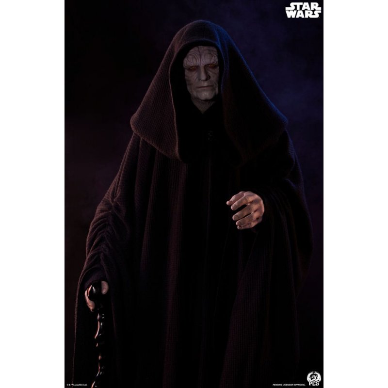 Premium Collectibles Studio is proud to present the Emperor Palpatine 1:3 Scale Hyperreal Statue, a best in class new collectible depicting the leader of the Galactic Empire. Standing nearly 25" tall, you'll quickly see how far we've gone to bring this incredibly realistic statue screen to life. Making use of screen used assets, leaving no stone unturned, we've achieved an unprecedented level of authenticity and realism. The lifelike silicon portrait and carefully tailored fabric clothing brings this villainous character to life in one third scale right down to the very textures of the fabric. The layered fabric costume perfectly emulates the Emperor's garb recreating the Emperor's menacing silhouette. Our statue has been created by world class artists and will be instantly recognized as the terrifying Sith Lord, Darth Sidious.The Emperor Palpatine 1:3 statue stands atop a pedestal style base decorated with four unique relief scenes with dramatic overhead LED lighting, each depicting important scenes from the STAR WARS™ saga. Give in to the Dark Side and add the Emperor Palpatine 1:3 Scale Hyperreal Statue to your STAR WARS collection today!Product Size: 64 x 33 x 41 cm