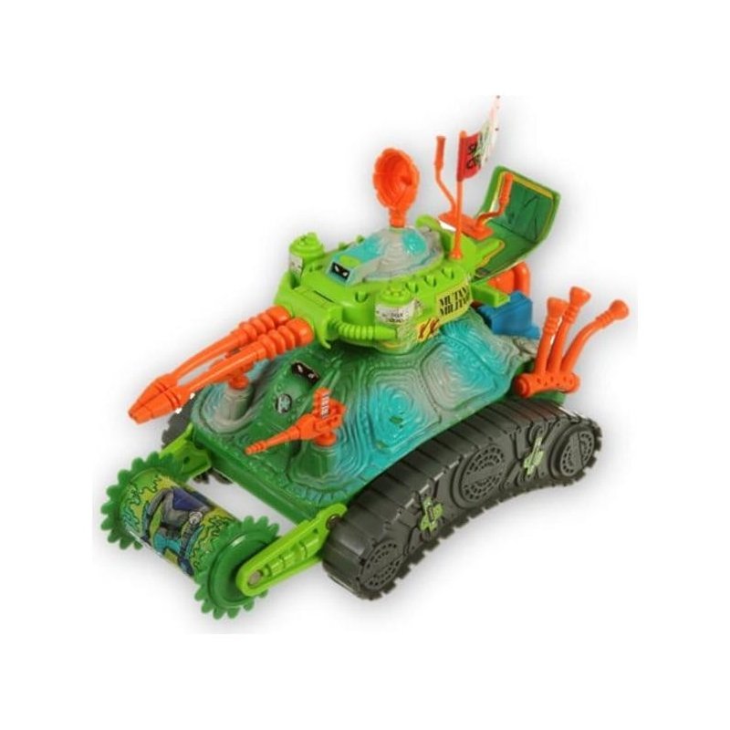 Atten hut! Listen to the rumble, mutants! Feel the roar! Salute the Turtle Tank - the Foot Clan crushin' treaded terror!Groove on the road in total command as the Turtle Tank flattens the Foot with awesome ease. Nothing can stop this shelled super squisher - not even hunkered - down fanatical Foot Soldiers.Watch the Mutant Military Turtles as they engage the Foot flattener - perfect for pancakin' punks (By the way, Lieutenant Leo likes that part the best!) And the twirlin' Turtle turret fully rotates to blast away at the baddies.Combine all that with dual snub mutant machine guns and a shellcrackin' cannon and you've got the meanest Mutant Military machine ever. Linked up with the Sewer Sub and Turtlecopter, the military Mutants can't be beaten.Go ahead - maul the mayhem makin' menaces - they deserve it. Dismissed!Dimensions approx. 25 x 14 cm(Batteries not included)