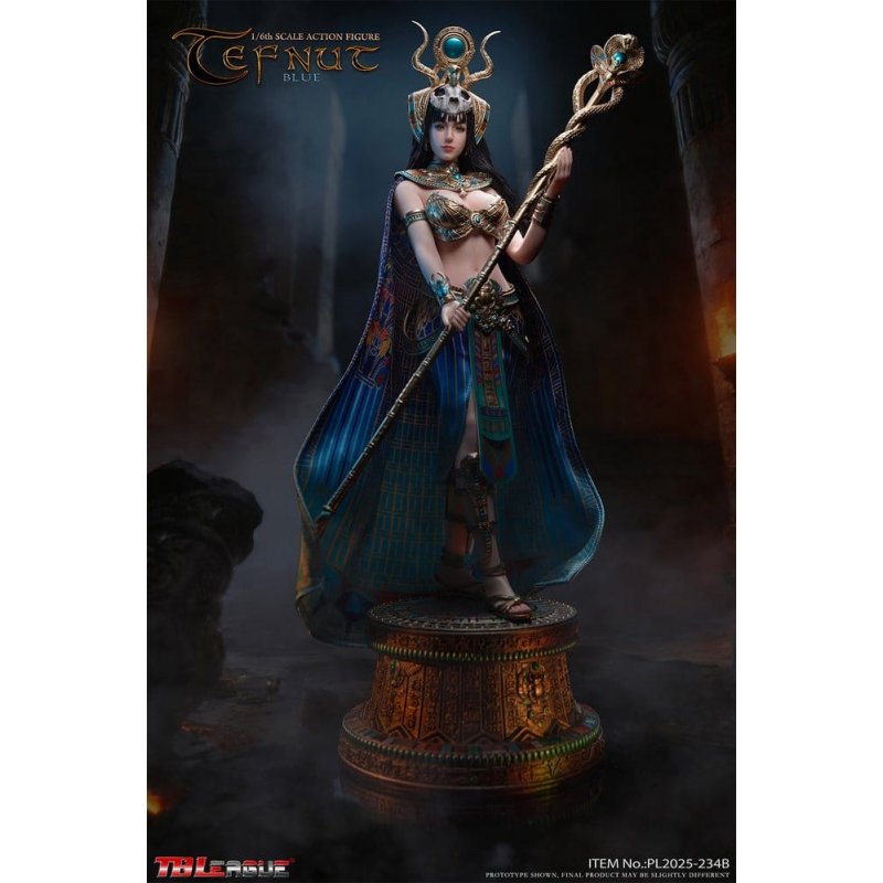 Sideshow and TBLeague are proud to present the Tefnut (Blue) Sixth Scale Figure!Tefnut is the primordial Egyptian goddess of moisture, rain, and dew. As one of the first deities created by Atum, she and her brother Shu (air) formed the essential duality that established cosmic order. Tefnut embodies the fundamental, life-sustaining power of water. She is both a nurturing force who provides vital moisture to the world, and a formidable deity whose absence brings drought and chaos. Her essence represents the delicate balance between creation and destruction, making her a vital pillar of the Egyptian pantheon.Don't miss your chance to add this Tefnut (Blue) Sixth Scale Figure to your collection today!