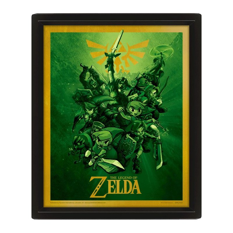 A framed 3D lenticular picture from Pyramid International, featuring Link from The Legend of Zelda. This collectible piece brings the character to life with a stunning 3D effect.