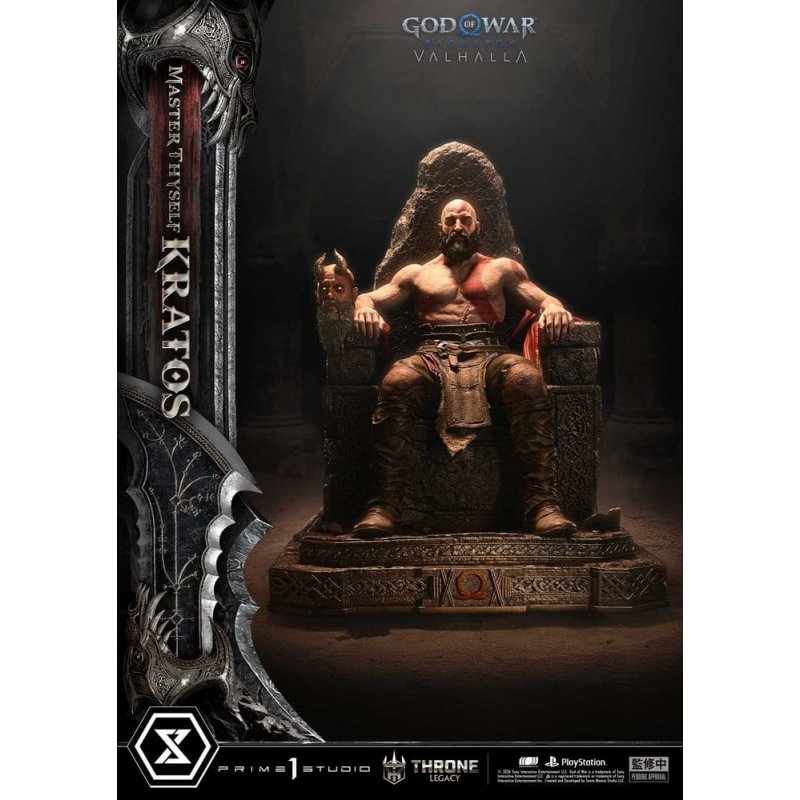 Peace. Hope. Past and present, now as one. Nine Realms' Mastered God of War, on the throne in 1/3 scaleFacing the end of the world and journeying across the vast Nine Realms, ""God of War Ragnarök"" stands as one of the series' defining milestones. From this action-adventure comes Master Thyself Kratos, joining the Throne Legacy lineup.After waging war against the Norse gods and seeing Atreus off on his path, Kratos turns to face his past in the DLC ""God of War Ragnarök: Valhalla"". This statue is inspired by a moment from that story. Having accepted his own sins and bridged his past and present, the God of War of the Nine Realms appears upon the throne in 1/3 scale-an embodiment of self-mastery realized in a format made to pursue the fullest depth of three-dimensional expression.A face framed by deep lines and a full beard carries the dignity of a warrior seasoned by the subtleties of life. Countless old scars across his skin are rendered with painstaking paintwork, capturing rough textures and profound shadows. Leather and iron armor, along with the runic patterns carved into the stone throne, evoke the rugged world of Norse myth. At his side sits his ally Mimir, reproduced with lifelike detail down to his curled beard. The light shining from both eyes via the built-in LED brings focus to the path Kratos sets his gaze upon.Pair Master Thyself Kratos with the simultaneously released Young Kratos and explore a variety of display arrangements. This is a piece that lets you feel the past, present, and future of a man who has walked a long road.Product Specifications:- God of War: Ragnarok -Themed Base - LED Illumination (Mimir's Eyes)LED Power Supply Method: TBD * Please prepare batteries, USB cables, or other necessary items depending on the final power supply method. "