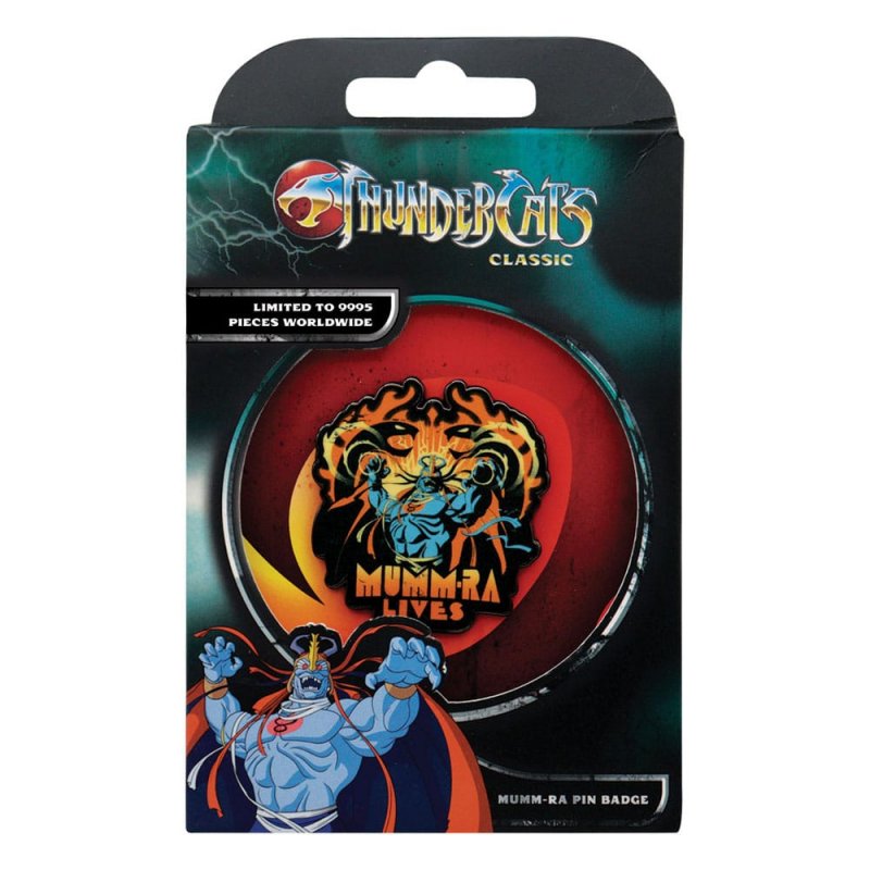 "Summon the dark power of Third Earth with the ThunderCats Mumm-Ra Lives Enamel Pin Badge. Designed with vibrant enamel detailing, this officially licensed pin celebrates everyone's favourite ever-living villain in style.Radiating with big Saturday morning cartoon villain energy, this badge is strictly limited to 9995 pieces worldwide with each being individually numbered on the reverse. Complete with a rubber clasp on the reverse, you can wear yours proudly on your jacket, bag, or display board.- Officially licensed - Limited to 9,995 - Individually numbered to reverse - 40 x 38mm"